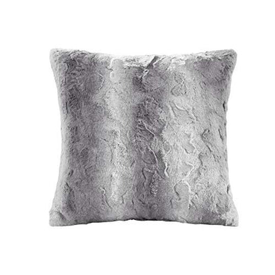 Zuri Faux Fur Faux Fur Modern Accent Throw Pillow, Luxury Animal Animal Square Animal Square Animal Square Decorative Pillow, 20X20", Grey