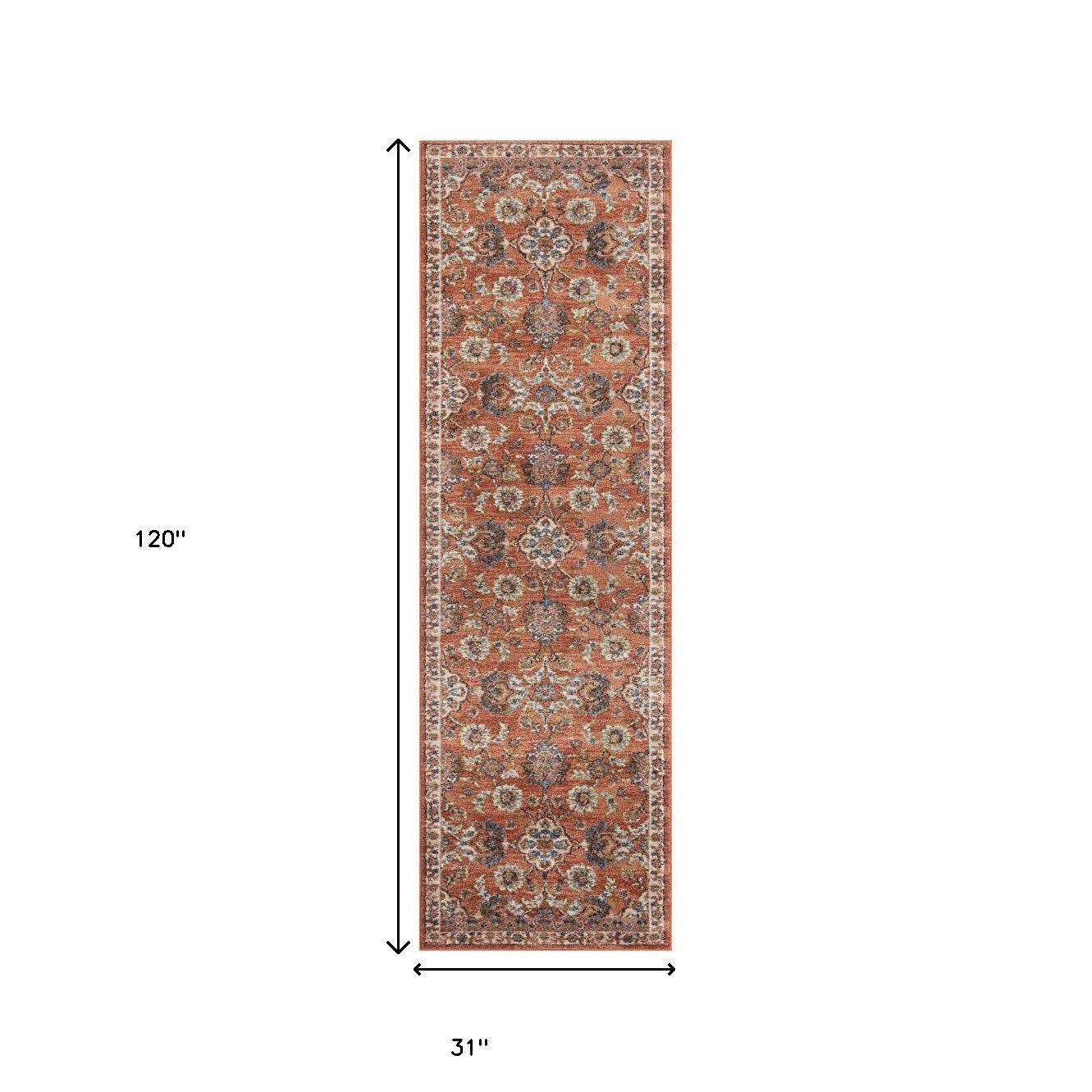 Add some artistry to your room with this 10-foot ivory blue and orange floral power loom runner rug. This runner shaped rug features a floral design in ivory blue and orange to give it visual interest. A classic shape marries with good looking design for your space ideal for spaces with kids and pets, this rug is stain resistant to help repel stains and spilled liquids. Place this area rug against a hardwood or tile floor and it will enliven your living space with style and sophistication. 31-inch H x 120-inch W x 0.4-inch D