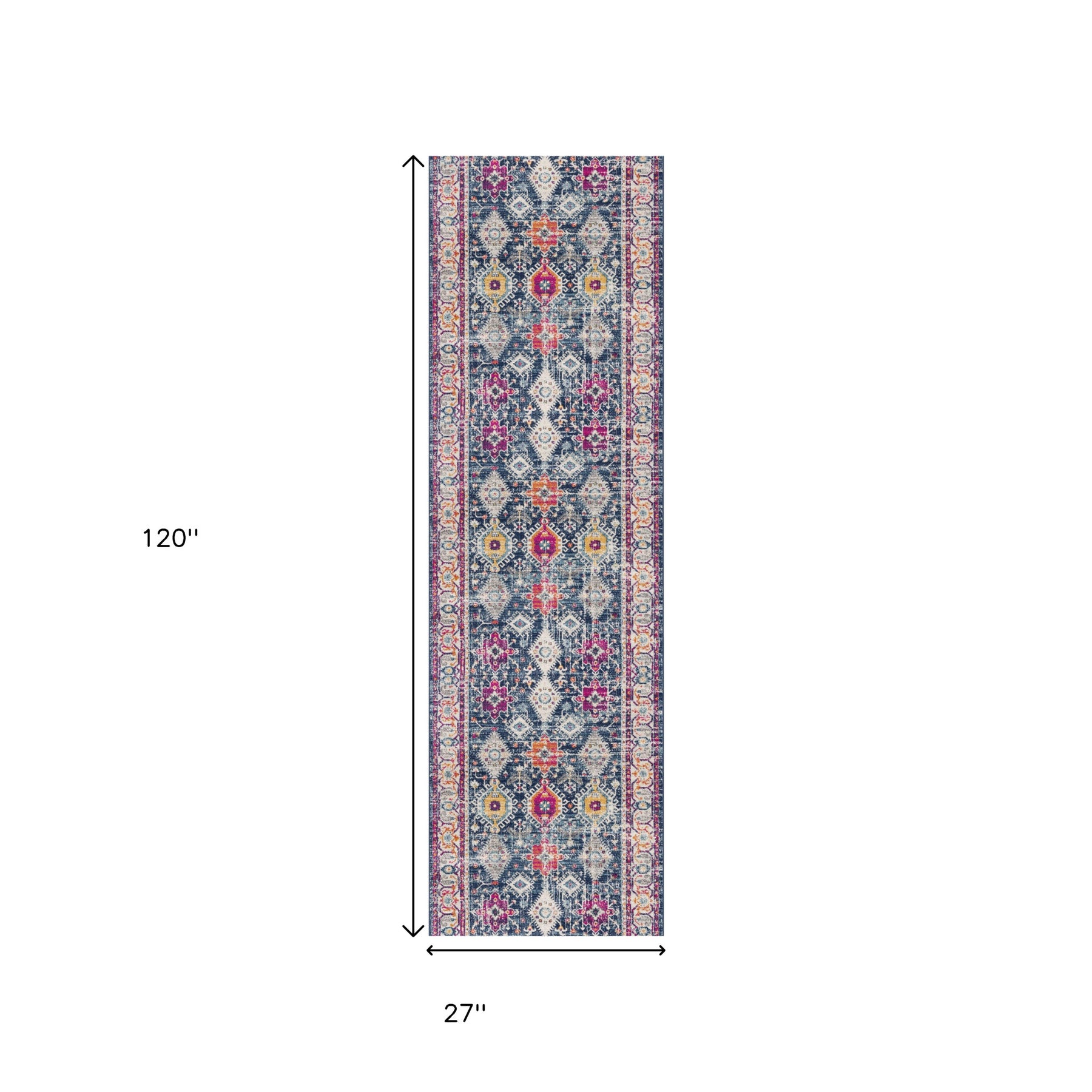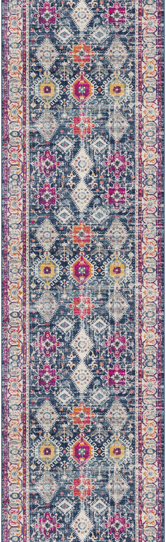 This 12-foot blue and ivory oriental runner rug, is a great way to add warmth to a room. Built to last, this rug crafted from polypropylene fibers is known for its durability and long lasting appeal. Rugs are a great way to showcase your style, hide imperfections, warm your home and reduce noise. This rectangular shaped rug features a abstract design that will add a functional and decorative accent to your space. This traditional style runner makes a great accent for the hallway, in front of cabinets, in the laundry room, or any other space you need a narrow and long rug. 27-inch h x 120-inch w x 0.4-inch d.