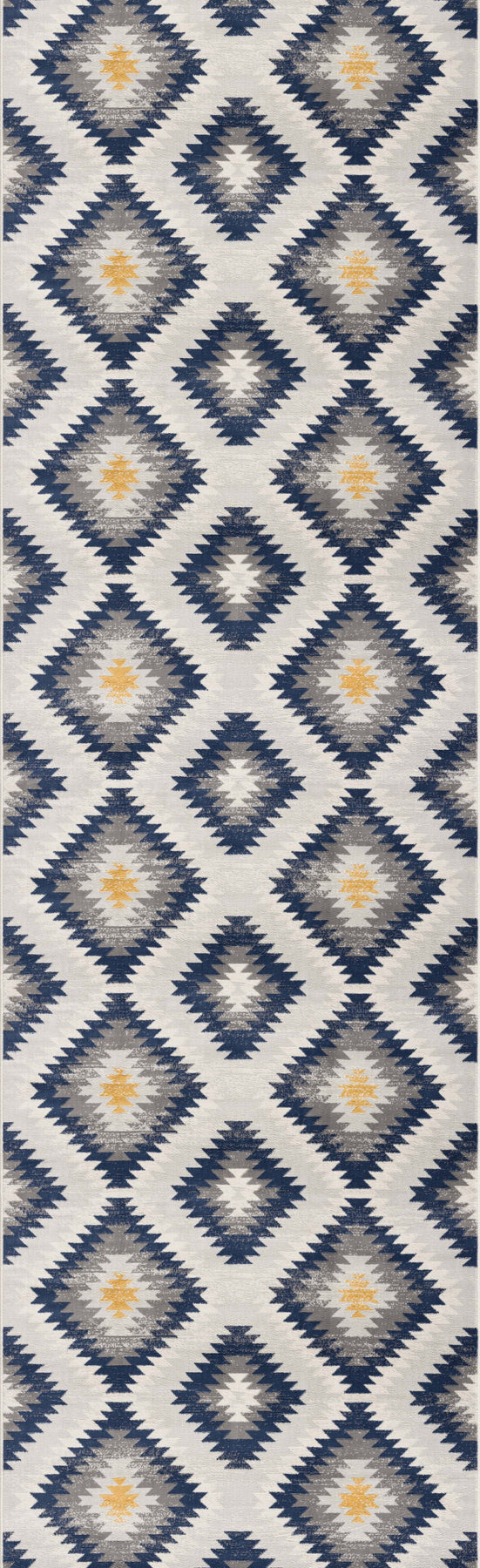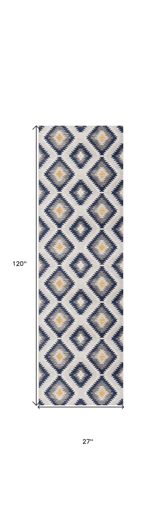 Add some artistry to your room with this 10' blue ikat kilim runner rug. This runner shaped rug features a ikat design in blue to give it visual interest. A classic shape marries with good looking design for your space Made in Turkey, this rug offers high quality combined with good looking designer sensibilities. Area Rugs help to give warmth and sense of home to your space. 0.4" H x 27" W x 120" D