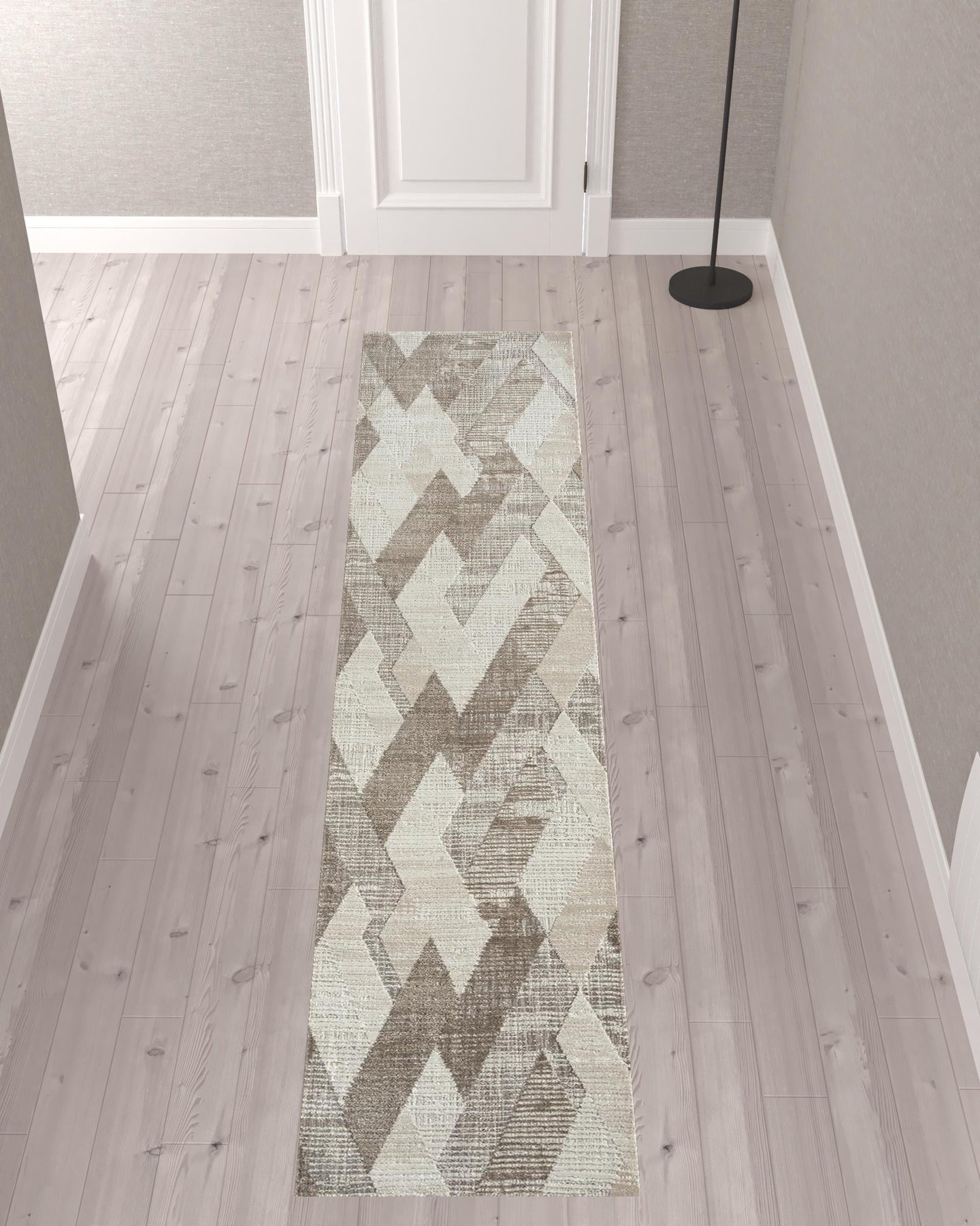 This 2' x 10' gray geometric runner rug, is a great way to add warmth to a room. This runner shaped rug features a geometric design in gray to give it visual interest. A classic shape marries with good looking design for your space Made in Turkey, this rug offers high quality combined with good looking designer sensibilities. Area Rugs help to give warmth and sense of home to your space. 0.35" H x 24" W x 120" D