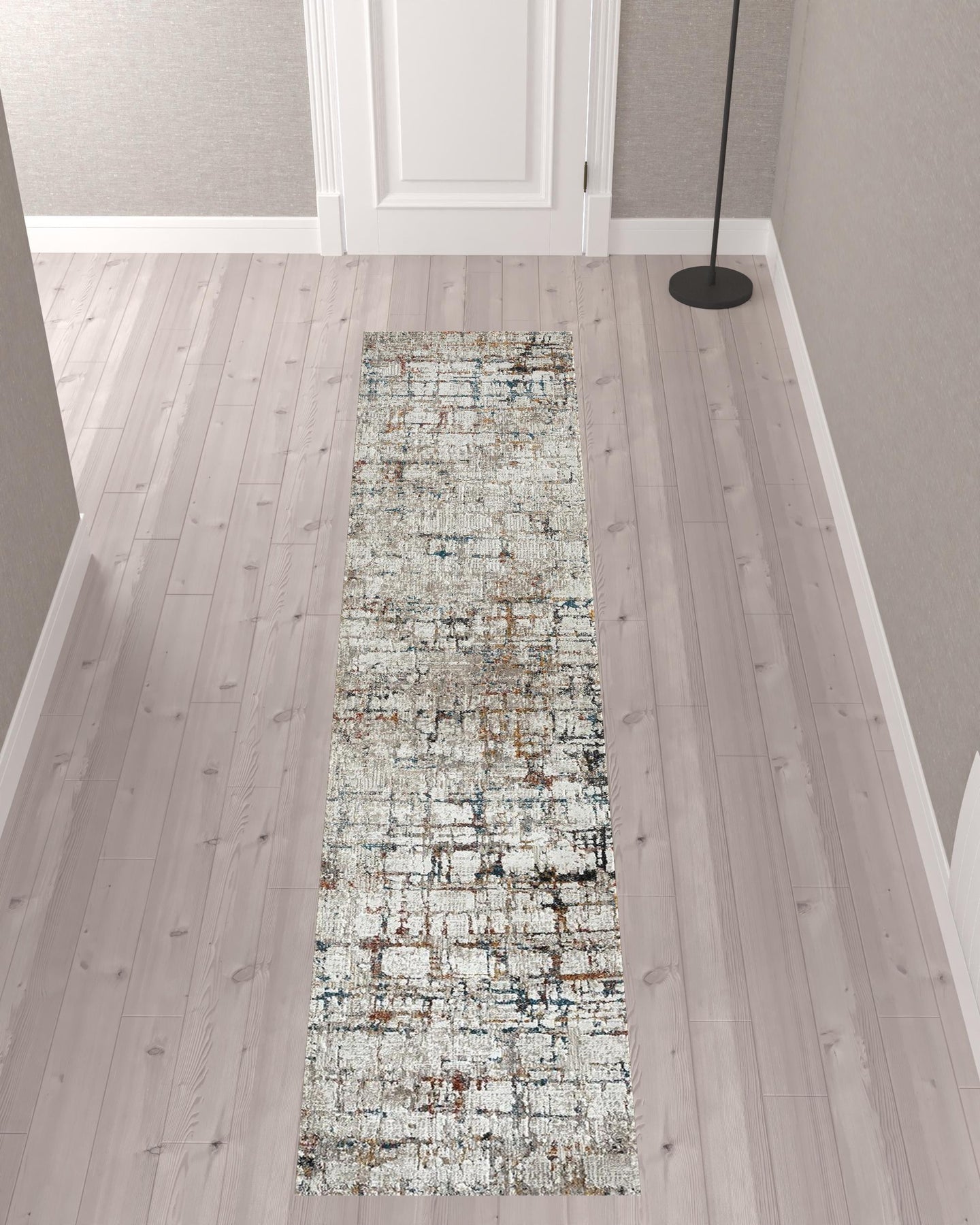 This 2' x 10' gray abstract distressed runner rug, is a great way to add warmth to a room. This runner shaped rug features a abstract design in gray to give it visual interest. A classic shape marries with good looking design for your space Made in Turkey, this rug offers high quality combined with good looking designer sensibilities. Area Rugs help to give warmth and sense of home to your space. 0.35" H x 24" W x 120" D