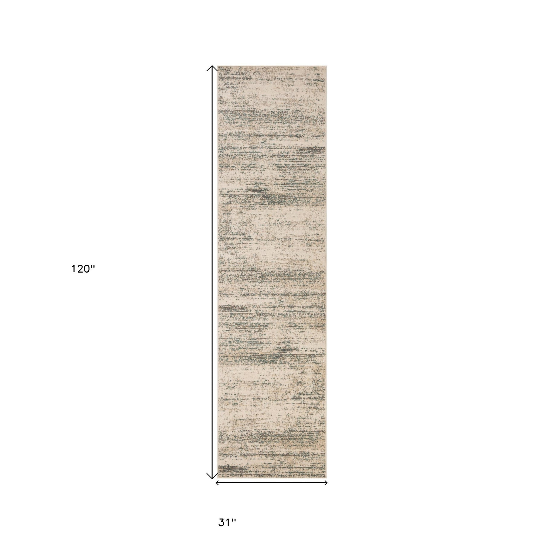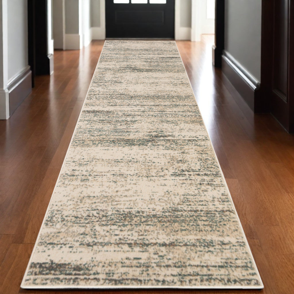 This 10-foot gray and ivory abstract power loom runner rug, is a great way to add warmth to a room. This runner shaped rug features a abstract design in gray and ivory to give it visual interest. A classic shape marries with good looking design for your space ideal for spaces with kids and pets, this rug is stain resistant to help repel stains and spilled liquids. Area rugs help to give warmth and sense of home to your space. 31-inch H x 120-inch W x 0.32-inch D