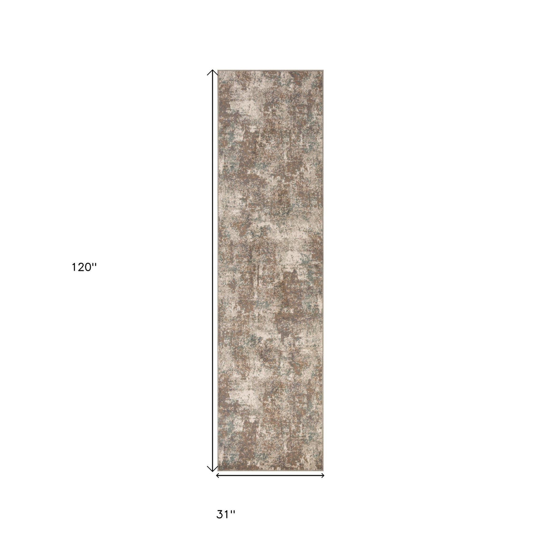 This 10-foot gray and light brown abstract power loom runner rug, is a great way to add warmth to a room. This runner shaped rug features a abstract design in gray and light brown to give it visual interest. A classic shape marries with good looking design for your space ideal for spaces with kids and pets, this rug is stain resistant to help repel stains and spilled liquids. Area rugs help to give warmth and sense of home to your space. 31-inch H x 120-inch W x 0.32-inch D