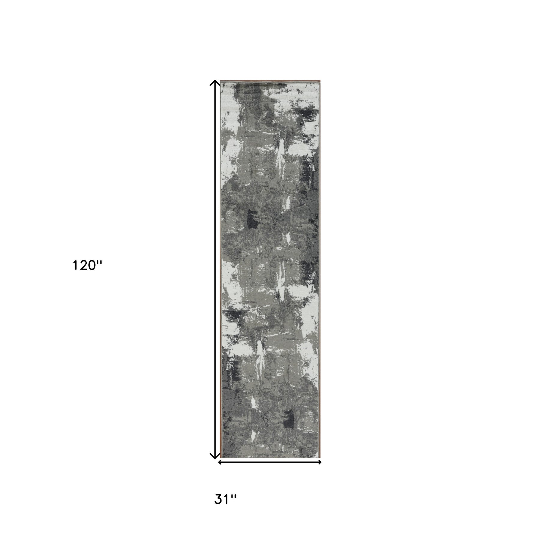 Add some artistry to your room with this 10-foot ivory black and gray abstract power loom runner rug. This runner shaped rug features a abstract design that will add a functional and decorative accent to your space. Ideal for spaces with kids and pets, this rug is stain resistant to help repel dirt and spilled liquids. This smaller sized rug is just what you need for your walkway, or in front of door, cabinet, refrigerator, or chair. 31-inch h x 120-inch w x 0.32-inch d