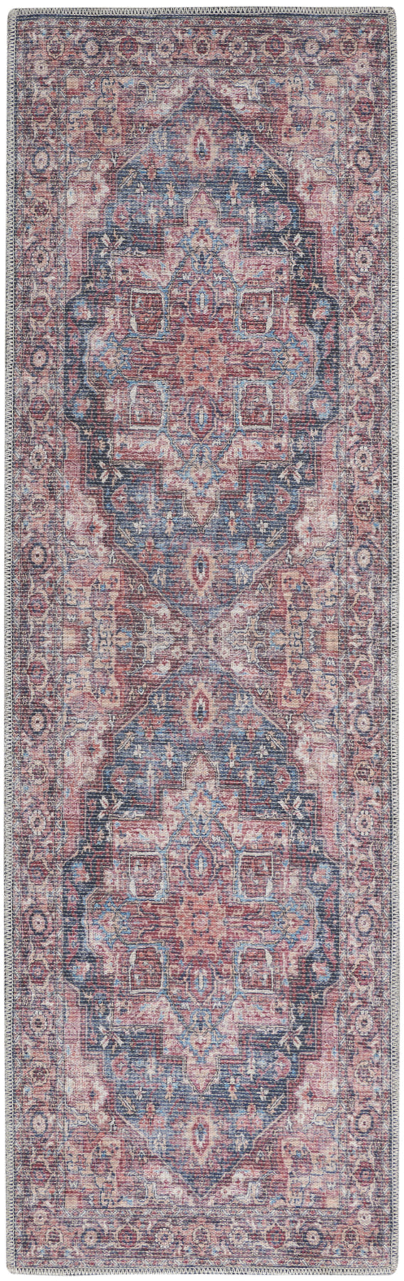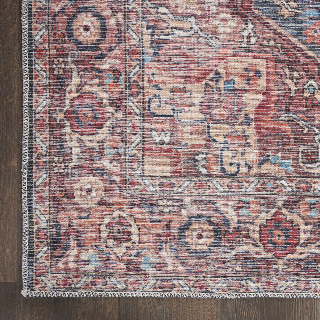 This 10' red floral power loom distressed washable runner rug, is a great way to add warmth to a room. This runner shaped rug features a floral design in red to give it visual interest. A classic shape marries with good looking design for your space This superior Turkish rug represents the highest quality and is built to last. Area Rugs help to give warmth and sense of home to your space. .28" H x 26.00" W x 120.00" D