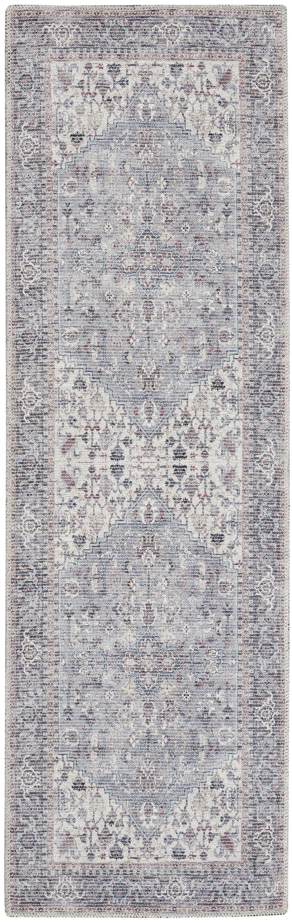 Add great coloration and comfortable texture to your space with this 10' gray floral power loom distressed washable runner rug. This runner shaped rug features a floral design in gray to give it visual interest. A classic shape marries with good looking design for your space This superior Turkish rug represents the highest quality and is built to last. Area Rugs help to give warmth and sense of home to your space. .28" H x 26.00" W x 120.00" D