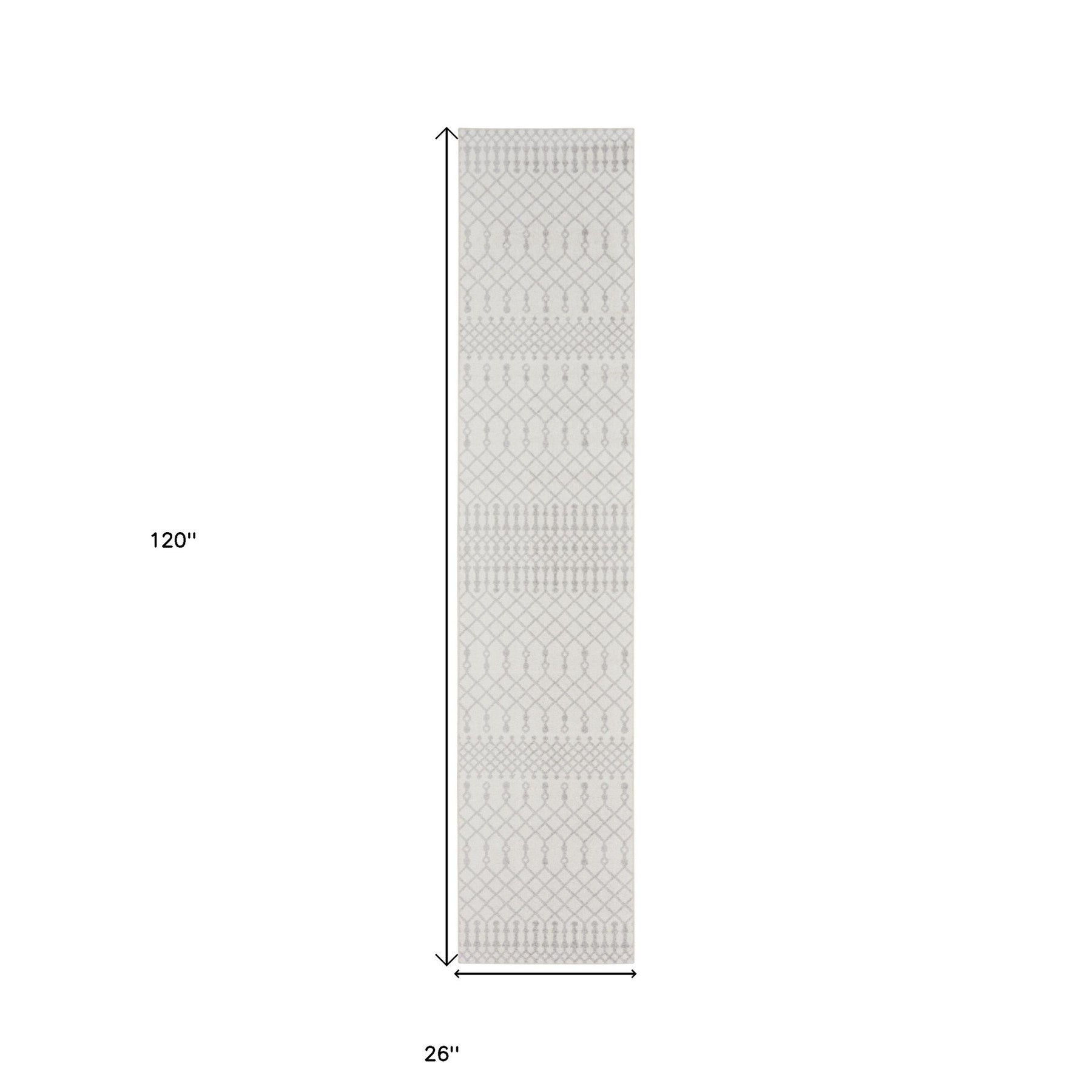 Add some artistry to your room with this 10-foot gray and ivory moroccan washable runner rug. Built to last, this rug crafted from polyester fibers is known for its durability and long lasting appeal. Rugs are a great way to showcase your style, hide imperfections, warm your home and reduce noise. This rectangular shaped rug features a abstract design that will add a functional and decorative accent to your space. This bohemian style runner makes a great accent for the hallway, in front of cabinets, in the laundry room, or any other space you need a narrow and long rug. 26-inch h x 120-inch w x 0.25-inch d.