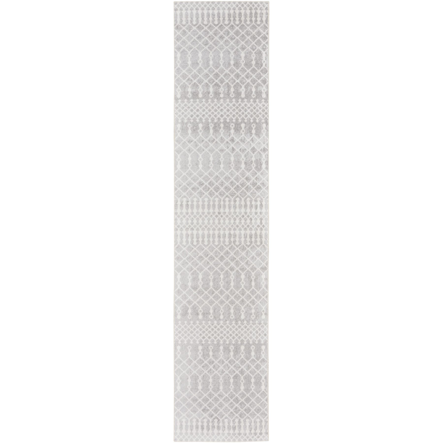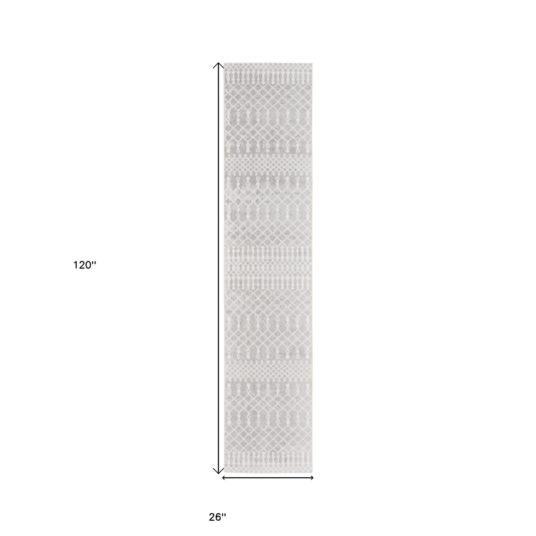 Add great coloration and comfortable texture to your space with this 10-foot gray and ivory moroccan washable runner rug. Built to last, this rug crafted from polyester fibers is known for its durability and long lasting appeal. Rugs are a great way to showcase your style, hide imperfections, warm your home and reduce noise. This rectangular shaped rug features a abstract design that will add a functional and decorative accent to your space. This bohemian style runner makes a great accent for the hallway, in front of cabinets, in the laundry room, or any other space you need a narrow and long rug. 26-inch h x 120-inch w x 0.25-inch d.