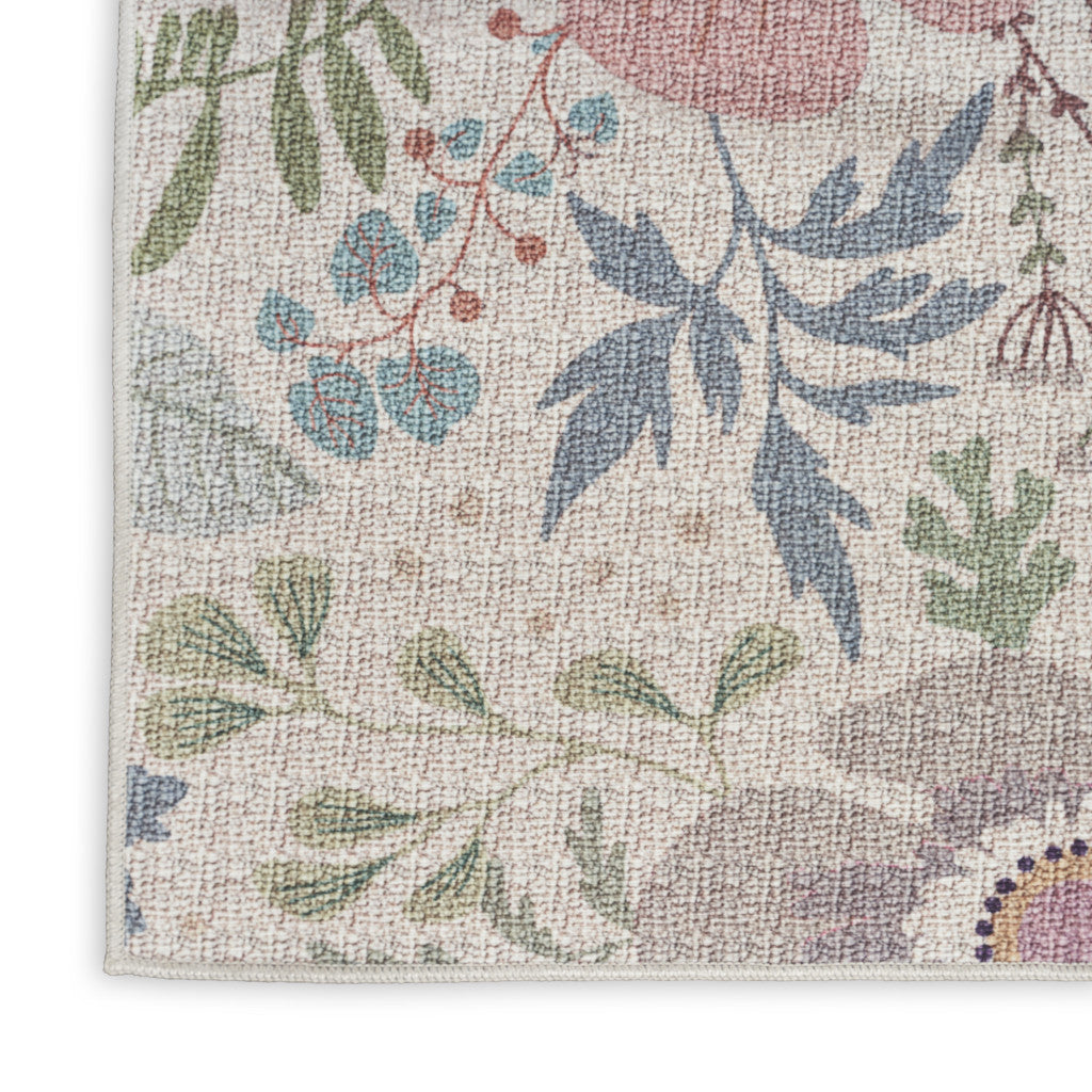 Add great coloration and comfortable texture to your space with this 10-foot cream floral washable runner rug. Rugs are a great way to showcase your style, hide imperfections, warm your home and reduce noise. This rectangular shaped rug features a abstract design that will add a functional and decorative accent to your space. This traditional style runner makes a great accent for the hallway, in front of cabinets, in the laundry room, or any other space you need a narrow and long rug. 26-inch h x 120-inch w x 0.25-inch d.