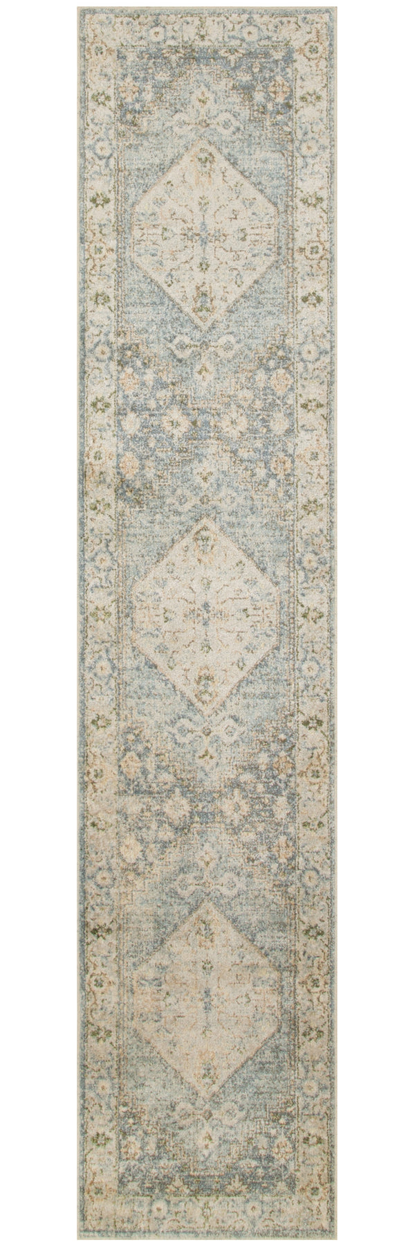 Set an inviting tone in your space with this 10-foot blue and silver floral medallion distressed washable runner rug. Built to last, this rug crafted from polyester fibers is known for its durability and long lasting appeal. Rugs are a great way to showcase your style, hide imperfections, warm your home and reduce noise. This rectangular shaped rug features a abstract design that will add a functional and decorative accent to your space. This traditional style runner makes a great accent for the hallway, in front of cabinets, in the laundry room, or any other space you need a narrow and long rug. 26-inch h x 120-inch w x 0.25-inch d.