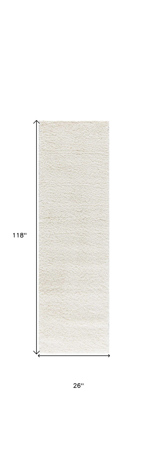 Add great coloration and comfortable texture to your space with this 10-foot cream shag non skid runner rug. Ideal for spaces with kids and pets, this rug is stain resistant to help repel dirt and spilled liquids. Built to last, this rug crafted from polypropylene fibers is known for its durability and long lasting appeal. Rugs are a great way to showcase your style, hide imperfections, warm your home and reduce noise. This runner shaped rug flaunts a cream color that will be a great way to accent your space. Solid colors are versatile and will blend with any existing decor style. The retro shag construction of this luxurious rug will provide a soft and comfortable barrier to color tile and hardwood floors. This transitional styled runners makes a great accent for the hallway, in front of cabinets, in the laundry room, or any other space you need a narrow and long rug. 26-inch h x 118-inch w x 1.54-inch d.