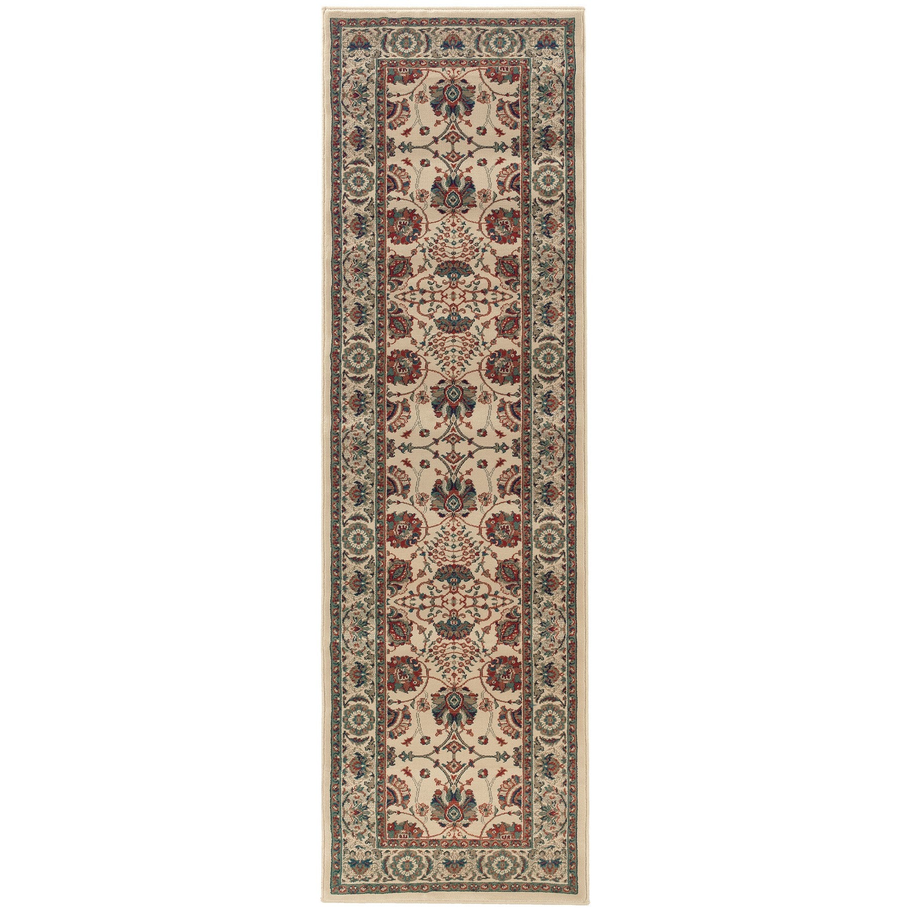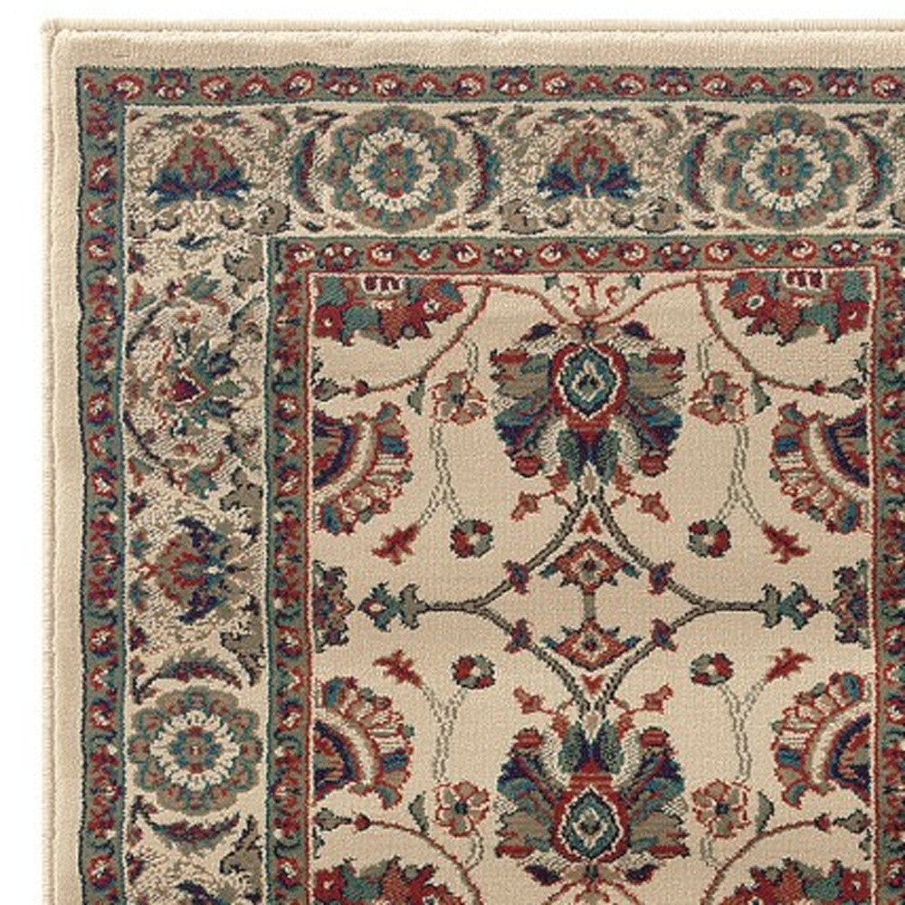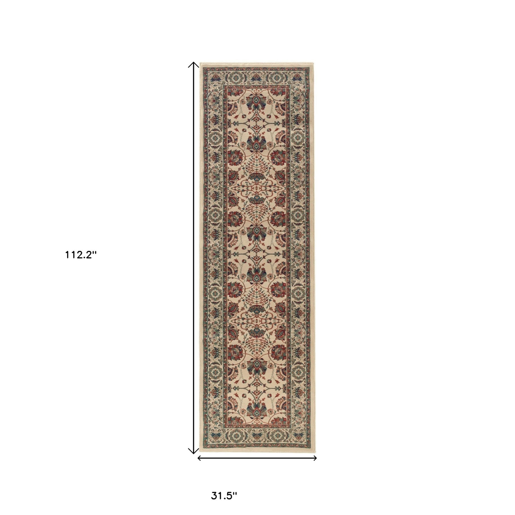Add some artistry to your room with this 9-foot ivory floral power loom runner rug. This runner shaped rug features a floral design in ivory to give it visual interest. A classic shape marries with good looking design for your space the coloring of this rug adds a delightfully neutral tone to your home and will easily match with most any decor. Ideal for spaces with kids and pets, this rug is stain resistant to help repel stains and spilled liquids. Area rugs help to give warmth and sense of home to your space. 31.5-inch H x 112.2-inch W x 0.43-inch D