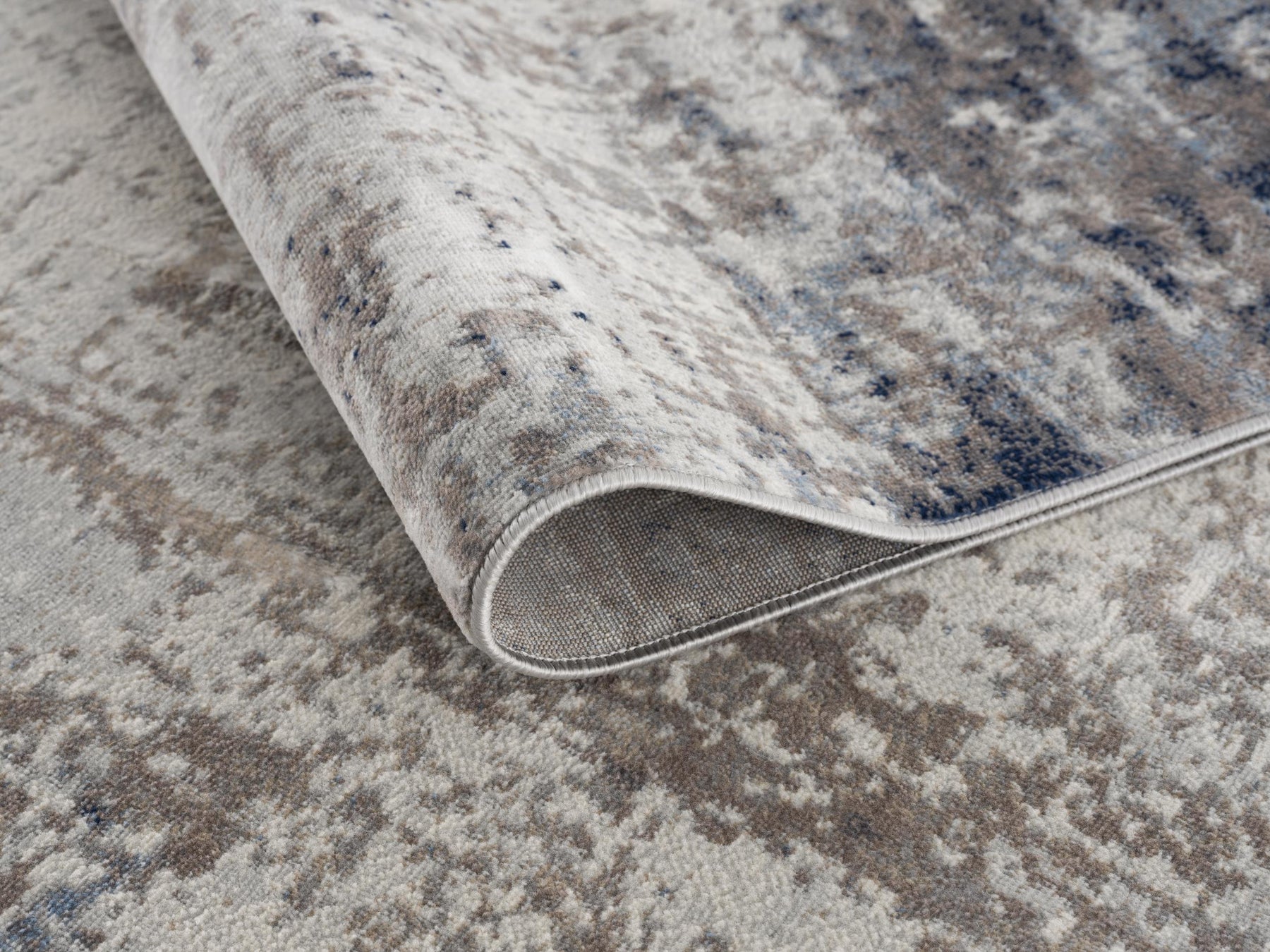 Add great coloration and comfortable texture to your space with this 9-foot navy blue beige and gray abstract runner rug. Ideal for spaces with kids and pets, this rug is stain resistant to help repel dirt and spilled liquids. Built to last, this rug crafted from polypropylene fibers is known for its durability and long lasting appeal. Rugs are a great way to showcase your style, hide imperfections, warm your home and reduce noise. This contemporary style runner makes a great accent for the hallway, in front of cabinets, in the laundry room, or any other space you need a narrow and long rug. 27-inch h x 108-inch w x 0.4-inch d.