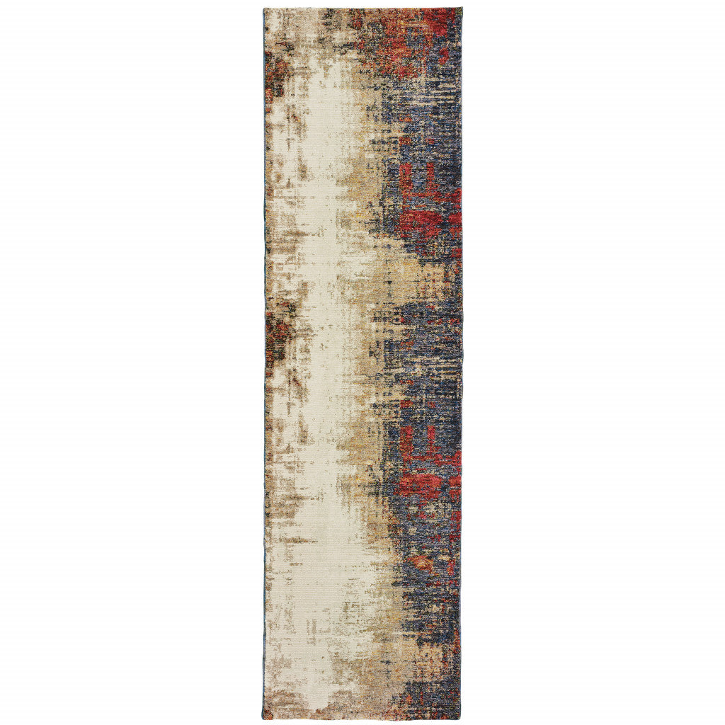 This 8-foot blue and beige abstract runner rug, is a great way to add warmth to a room. Ideal for spaces with kids and pets, this rug is stain resistant to help repel dirt and spilled liquids. Built to last, this rug crafted from polypropylene and nylon fibers is known for its durability and long lasting appeal. Rugs are a great way to showcase your style, hide imperfections, warm your home and reduce noise. This rectangular shaped rug features a abstract design that will add a functional and decorative accent to your space. 26.38-inch h x 99.61-inch w x 0.55-inch d.