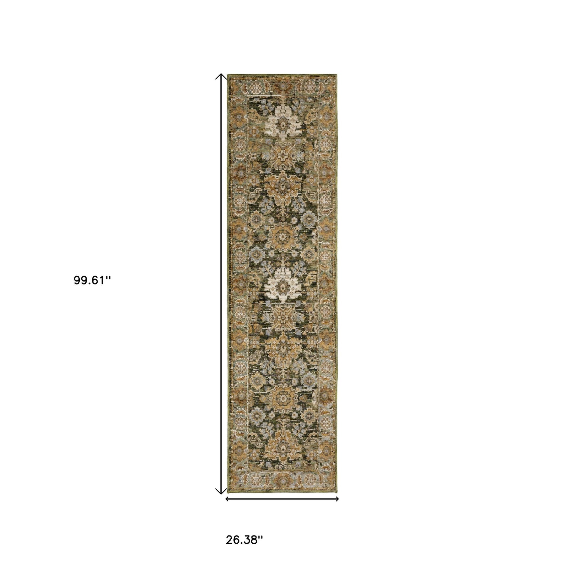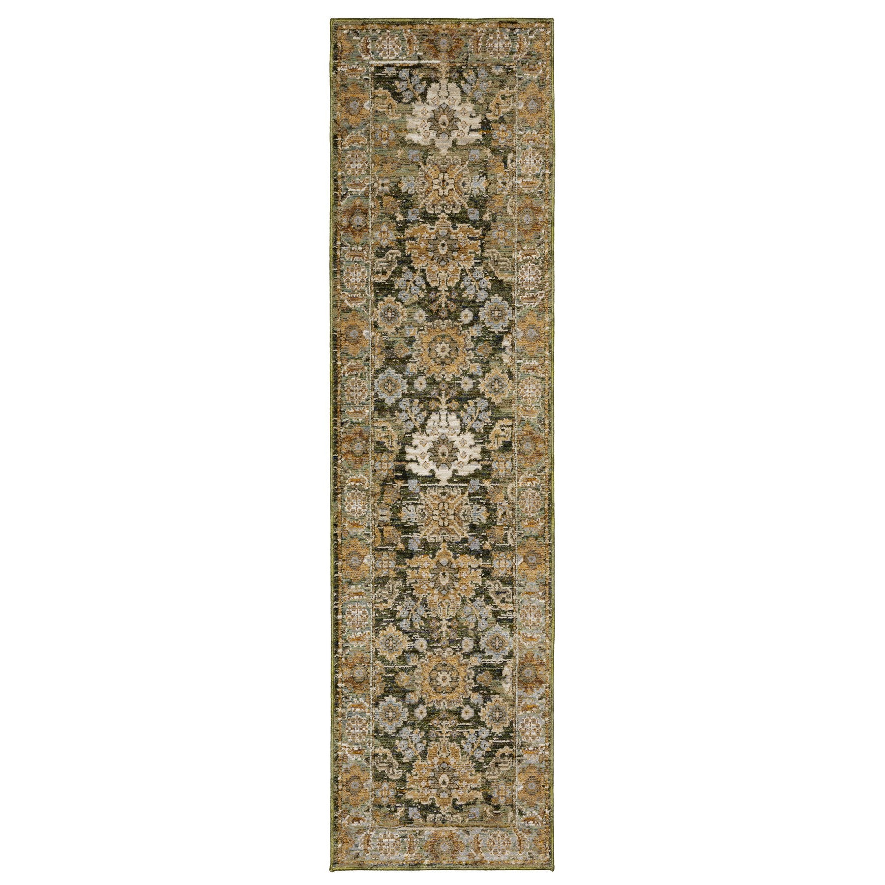 Set an inviting tone in your space with this 8-foot green oriental power loom runner rug. This runner shaped rug features a oriental design in green to give it visual interest. A classic shape marries with good looking design for your space ideal for spaces with kids and pets, this rug is stain resistant to help repel stains and spilled liquids. Area rugs help to give warmth and sense of home to your space. 26.38-inch H x 99.61-inch W x 0.55-inch D