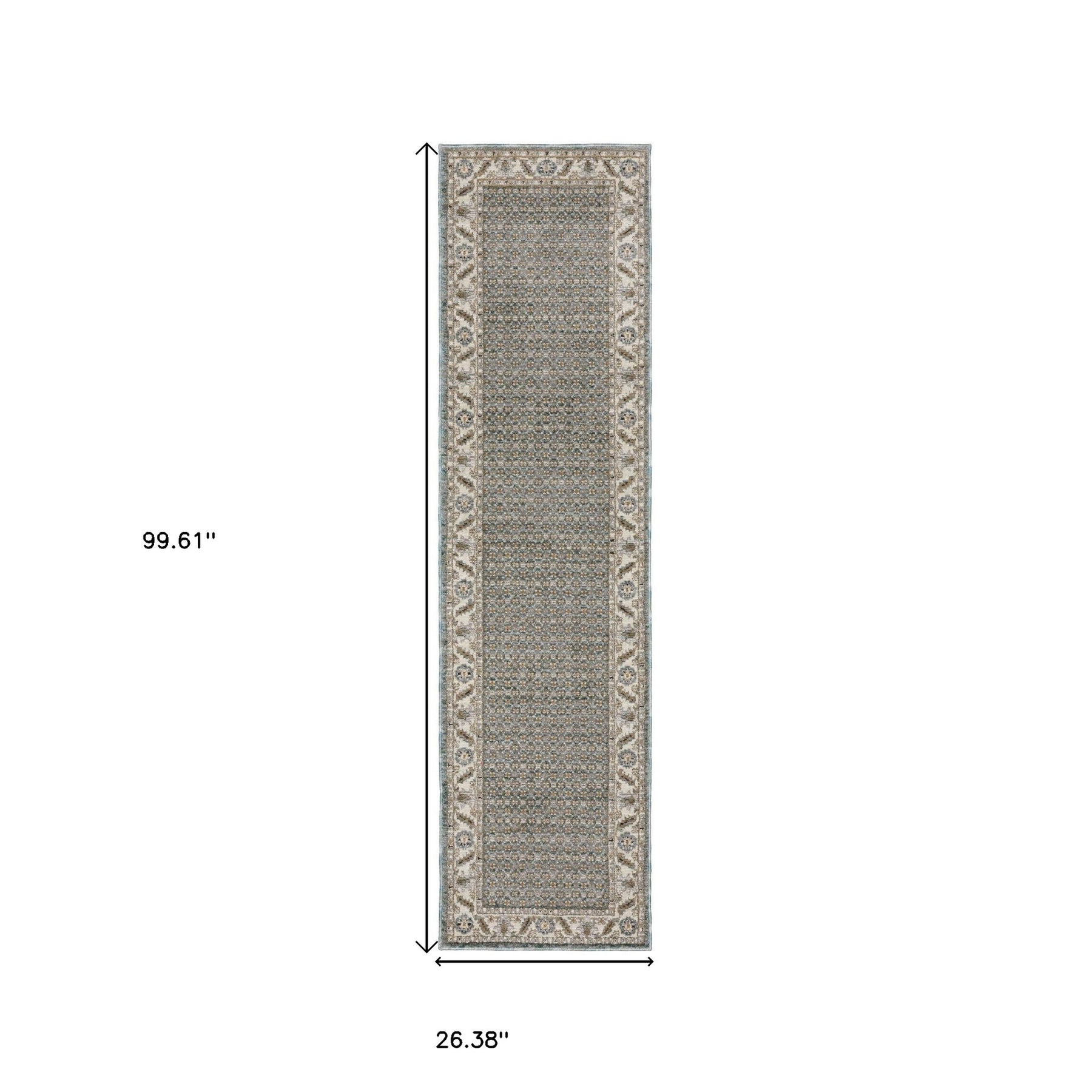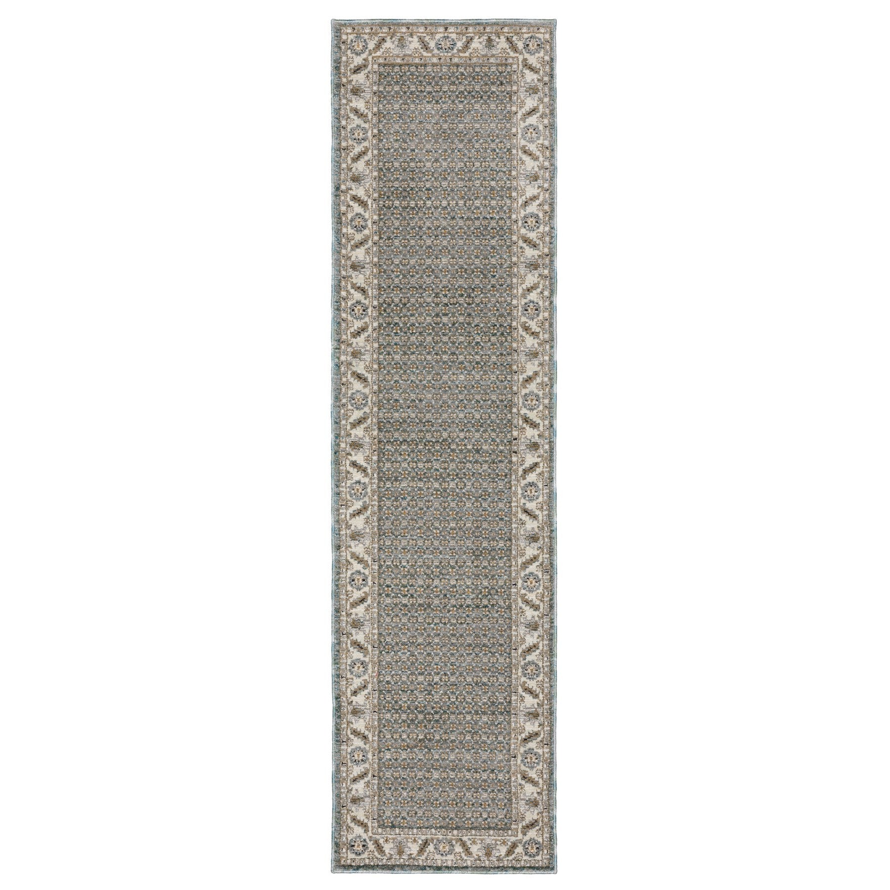 Add some artistry to your room with this 8-foot blue oriental power loom runner rug. This runner shaped rug features a oriental design in blue to give it visual interest. A classic shape marries with good looking design for your space ideal for spaces with kids and pets, this rug is stain resistant to help repel stains and spilled liquids. Place this area rug against a hardwood or tile floor and it will enliven your living space with style and sophistication. 26.38-inch H x 99.61-inch W x 0.55-inch D