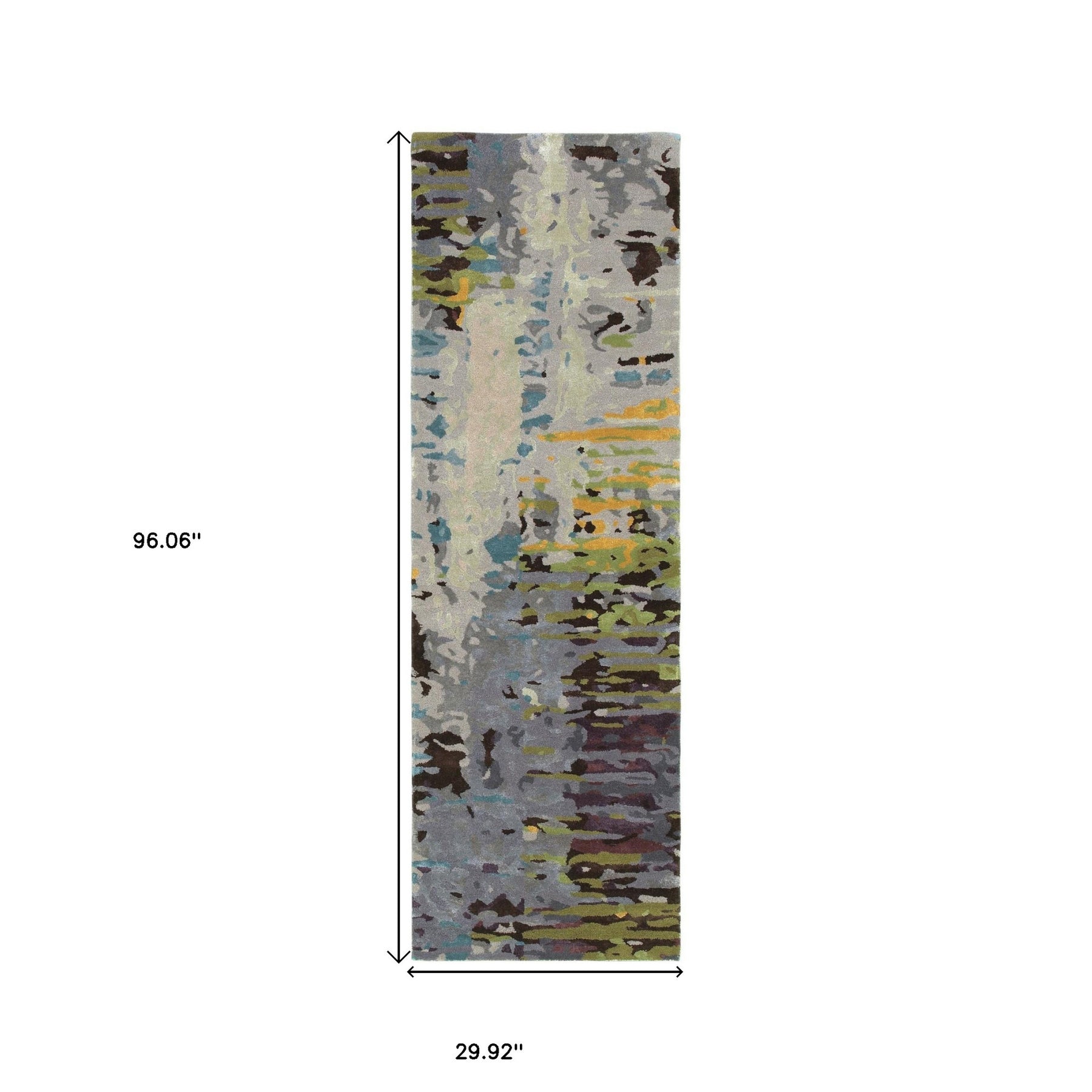 Add some artistry to your room with this 8-foot gray abstract hand tufted runner rug. This runner shaped rug features a abstract design in gray to give it visual interest. A classic shape marries with good looking design for your space the coloring of this rug adds a delightfully neutral tone to your home and will easily match with most any decor. Area rugs help to give warmth and sense of home to your space. 29.92-inch H x 96.06-inch W x 0.39-inch D