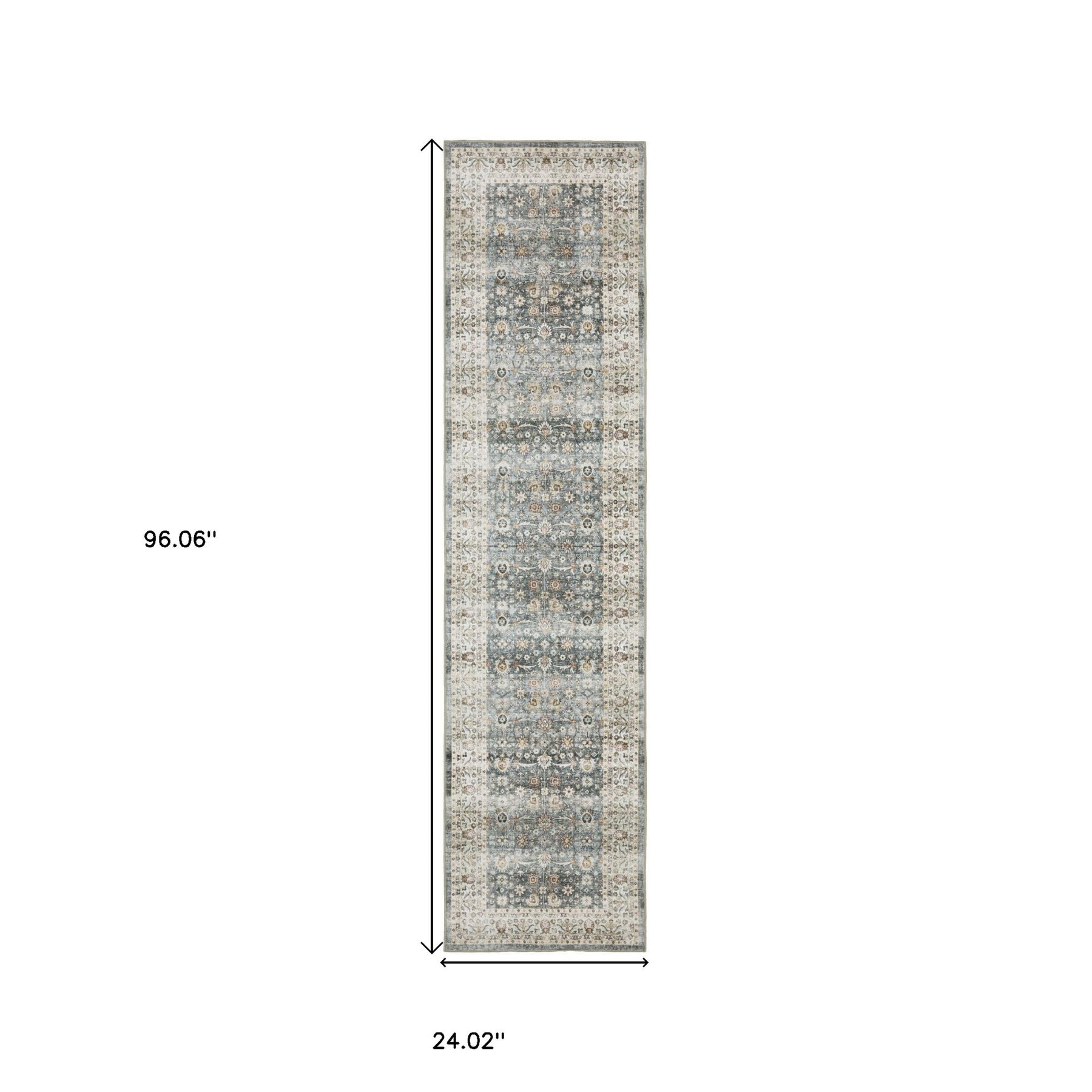Add great coloration and comfortable texture to your space with this 8-foot gray oriental non skid runner rug. This runner shaped rug features a oriental design in gray to give it visual interest. A classic shape marries with good looking design for your space the coloring of this rug adds a delightfully neutral tone to your home and will easily match with most any decor. Ideal for spaces with kids and pets, this rug is stain resistant to help repel stains and spilled liquids. Place this area rug against a hardwood or tile floor and it will enliven your living space with style and sophistication. 24.02-inch H x 96.06-inch W x 0.12-inch D