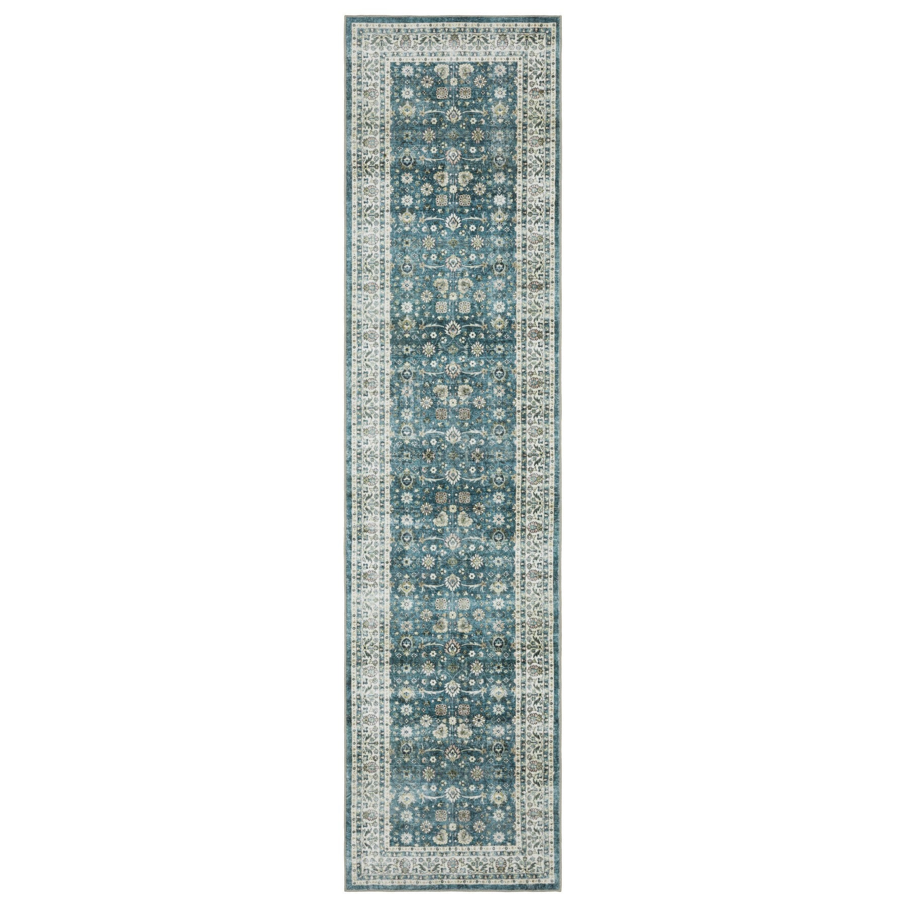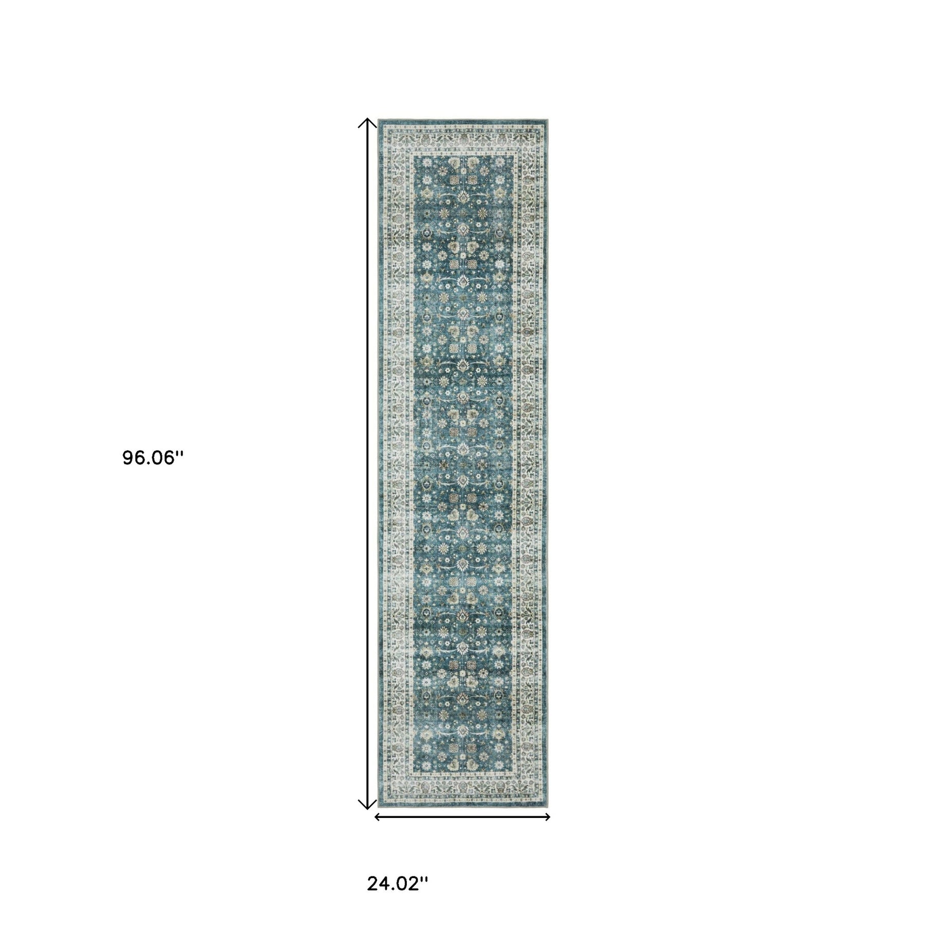 Set an inviting tone in your space with this 8-foot teal oriental non skid runner rug. This runner shaped rug features a oriental design in teal to give it visual interest. A classic shape marries with good looking design for your space ideal for spaces with kids and pets, this rug is stain resistant to help repel stains and spilled liquids. Place this area rug against a hardwood or tile floor and it will enliven your living space with style and sophistication. 24.02-inch H x 96.06-inch W x 0.12-inch D