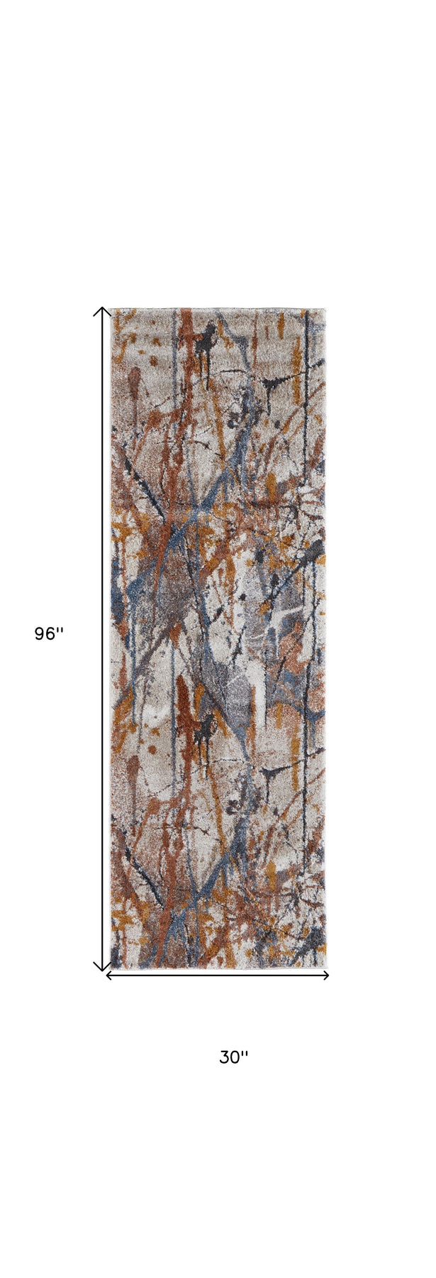 Add some artistry to your room with this 8-foot ivory blue and brown abstract power loom runner rug. This runner shaped rug features a abstract design in ivory blue and brown to give it visual interest. A classic shape marries with good looking design for your space ideal for spaces with kids and pets, this rug is stain resistant to help repel stains and spilled liquids. Area rugs help to give warmth and sense of home to your space. 30-inch H x 96-inch W x 0.87-inch D