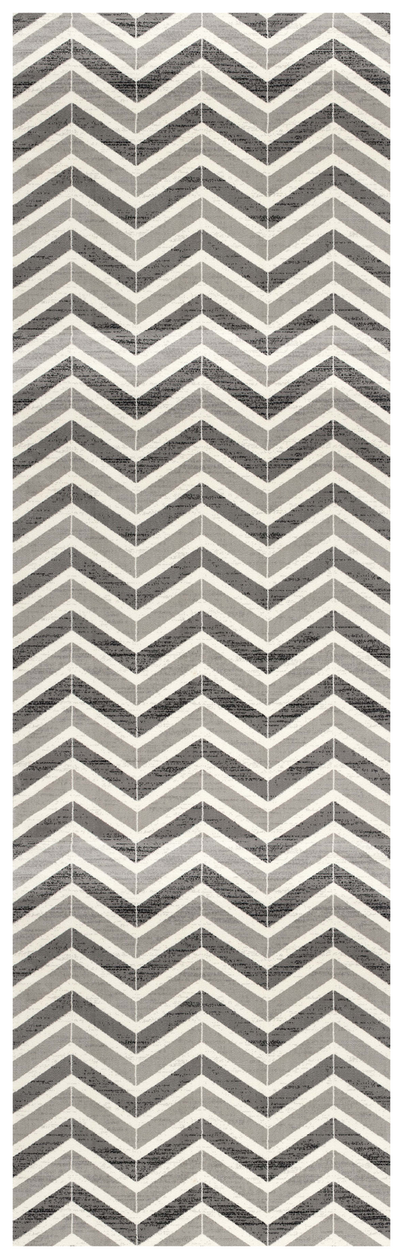 This 8' gray chevron power loom runner rug, is a great way to add warmth to a room. This runner shaped rug features a chevron design in gray to give it visual interest. A classic shape marries with good looking design for your space This superior Turkish rug represents the highest quality and is built to last. Area Rugs help to give warmth and sense of home to your space. 0.8" H x 32" W x 96" D