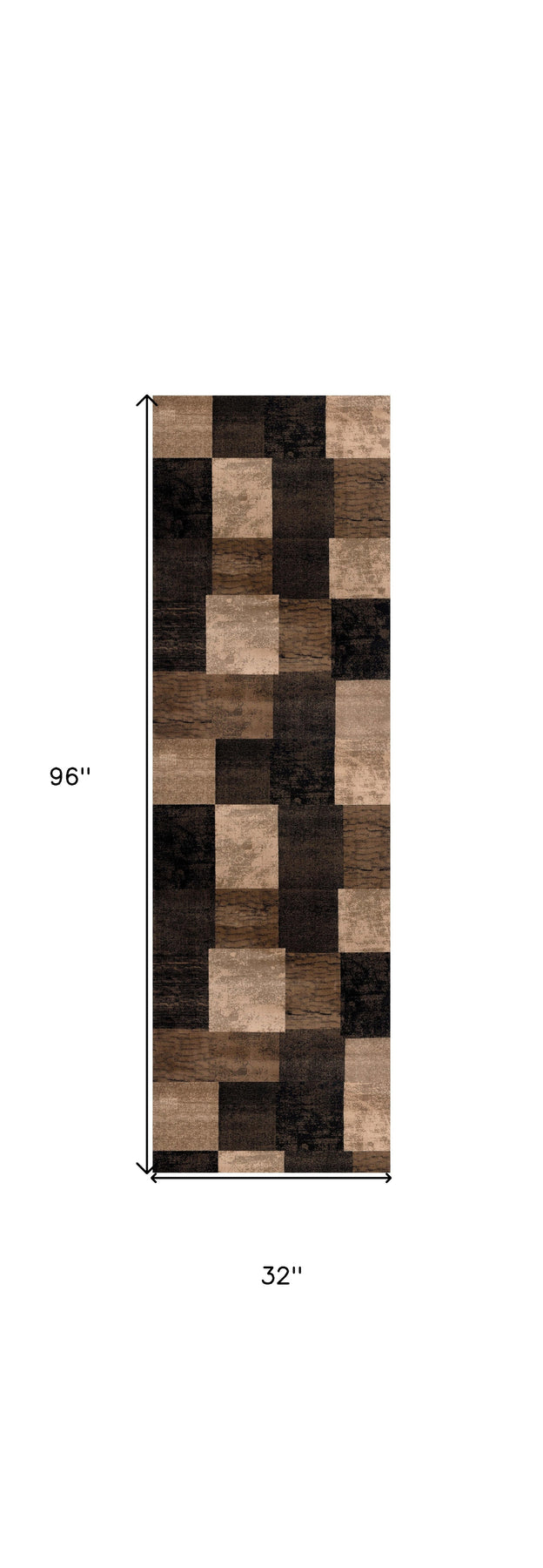 Set an inviting tone in your space with this 8-foot brown black and tan geometric power loom runner rug. This runner shaped rug features a geometric design in brown black and tan to give it visual interest. A classic shape marries with good looking design for your space ideal for spaces with kids and pets, this rug is stain resistant to help repel stains and spilled liquids. Area rugs help to give warmth and sense of home to your space. 32-inch H x 96-inch W x 0.8-inch D