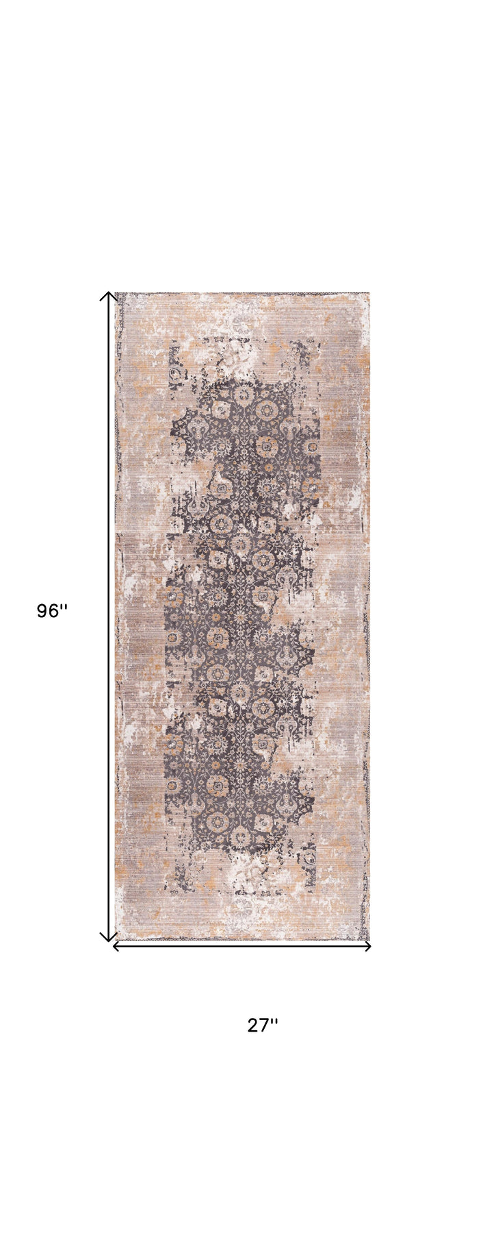 This 8-foot gray and ivory oriental runner rug, is a great way to add warmth to a room. Built to last, this rug crafted from polyester fibers is known for its durability and long lasting appeal. Rugs are a great way to showcase your style, hide imperfections, warm your home and reduce noise. This rectangular shaped rug features a abstract design that will add a functional and decorative accent to your space. This modern style runner makes a great accent for the hallway, in front of cabinets, in the laundry room, or any other space you need a narrow and long rug. 27-inch h x 96-inch w x 0.6-inch d.