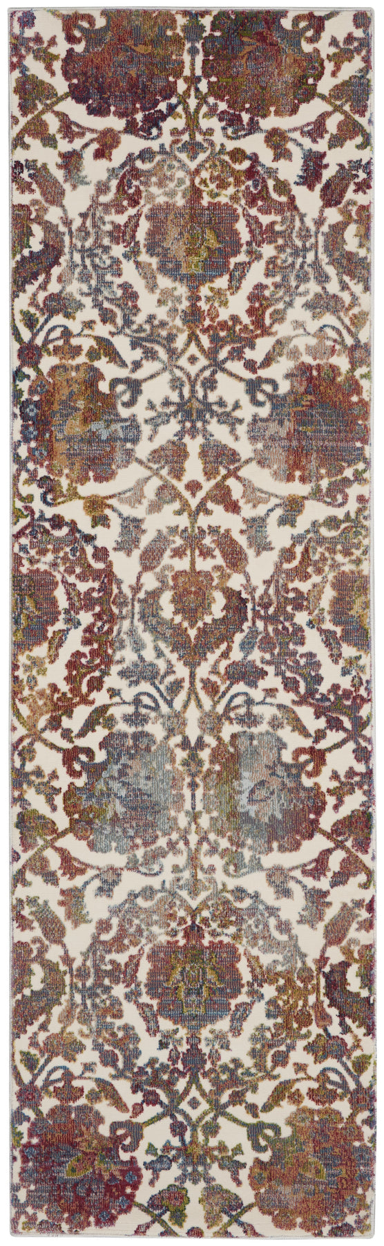 Add some artistry to your room with this 8-foot white and golden brown floral distressed non skid runner rug. Built to last, this rug crafted from polypropylene and polyester blend fibers is known for its durability and long lasting appeal. Rugs are a great way to showcase your style, hide imperfections, warm your home and reduce noise. This rectangular shaped rug features a abstract design that will add a functional and decorative accent to your space. This transitional styled runners makes a great accent for the hallway, in front of cabinets, in the laundry room, or any other space you need a narrow and long rug. 28-inch h x 96-inch w x 0.5-inch d