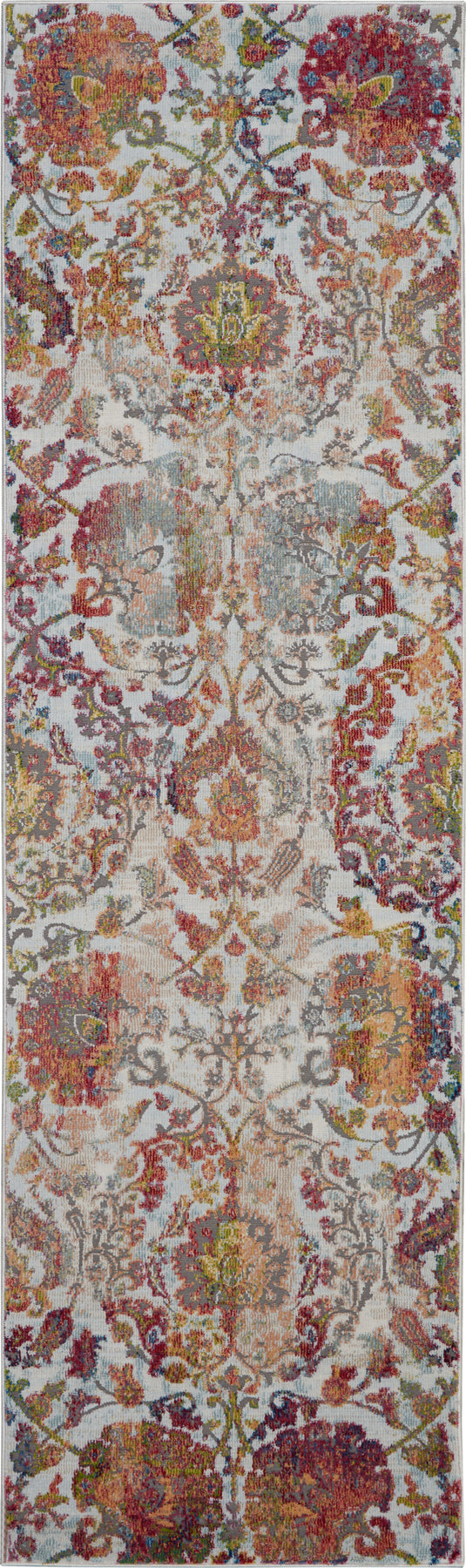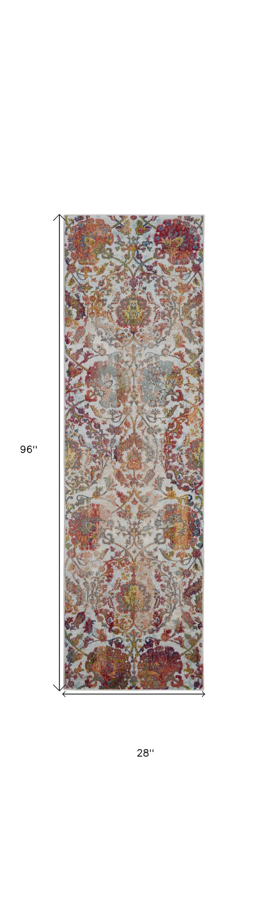 Set an inviting tone in your space with this 8-foot ivory gray and orange floral distressed non skid runner rug. Built to last, this rug crafted from polypropylene and polyester blend fibers is known for its durability and long lasting appeal. Rugs are a great way to showcase your style, hide imperfections, warm your home and reduce noise. This rectangular shaped rug features a abstract design that will add a functional and decorative accent to your space. This transitional styled runners makes a great accent for the hallway, in front of cabinets, in the laundry room, or any other space you need a narrow and long rug. 28-inch h x 96-inch w x 0.5-inch d