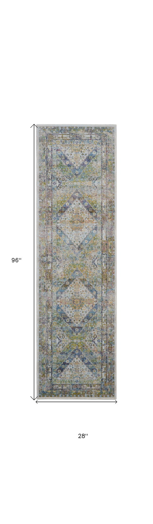 This 8-foot ivory blue and green floral distressed non skid runner rug, is a great way to add warmth to a room. Built to last, this rug crafted from polypropylene and polyester blend fibers is known for its durability and long lasting appeal. Rugs are a great way to showcase your style, hide imperfections, warm your home and reduce noise. This rectangular shaped rug features a abstract design that will add a functional and decorative accent to your space. This transitional styled runners makes a great accent for the hallway, in front of cabinets, in the laundry room, or any other space you need a narrow and long rug. 28-inch h x 96-inch w x 0.5-inch d