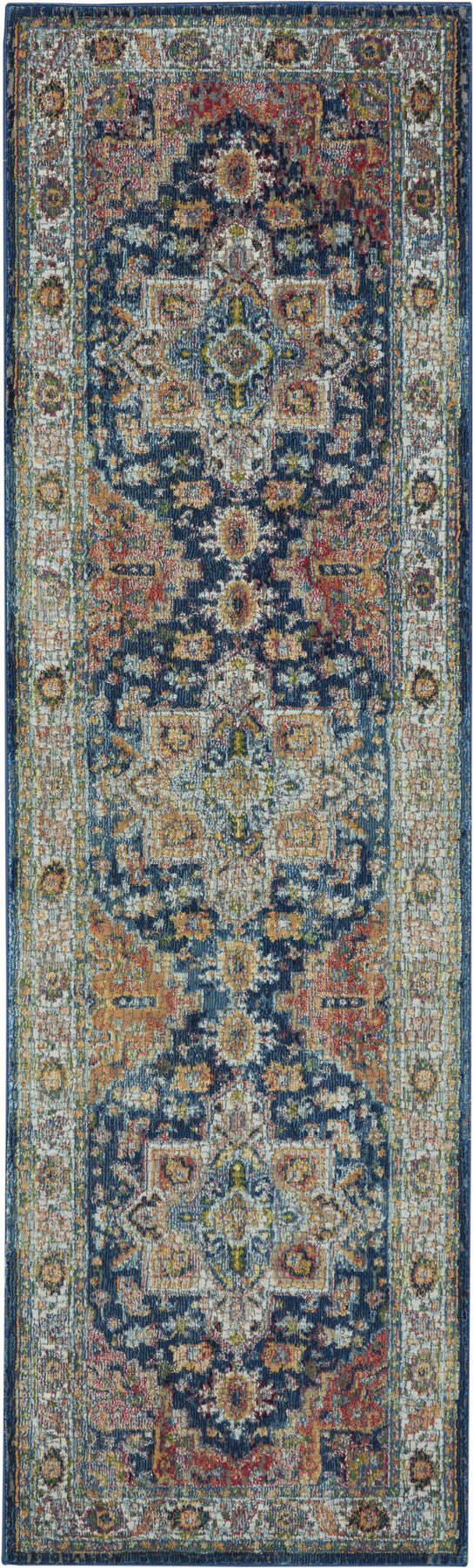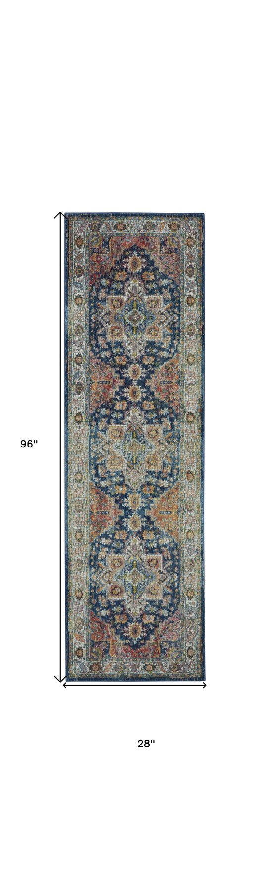 Add great coloration and comfortable texture to your space with this 8-foot ivory blue and orange floral distressed non skid runner rug. Built to last, this rug crafted from polypropylene and polyester blend fibers is known for its durability and long lasting appeal. Rugs are a great way to showcase your style, hide imperfections, warm your home and reduce noise. This rectangular shaped rug features a abstract design that will add a functional and decorative accent to your space. This transitional styled runners makes a great accent for the hallway, in front of cabinets, in the laundry room, or any other space you need a narrow and long rug. 28-inch h x 96-inch w x 0.5-inch d