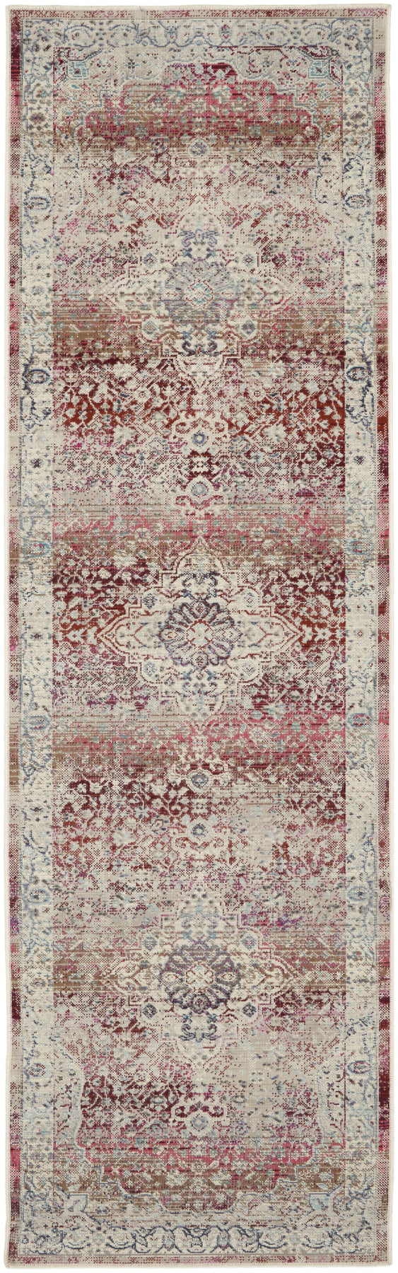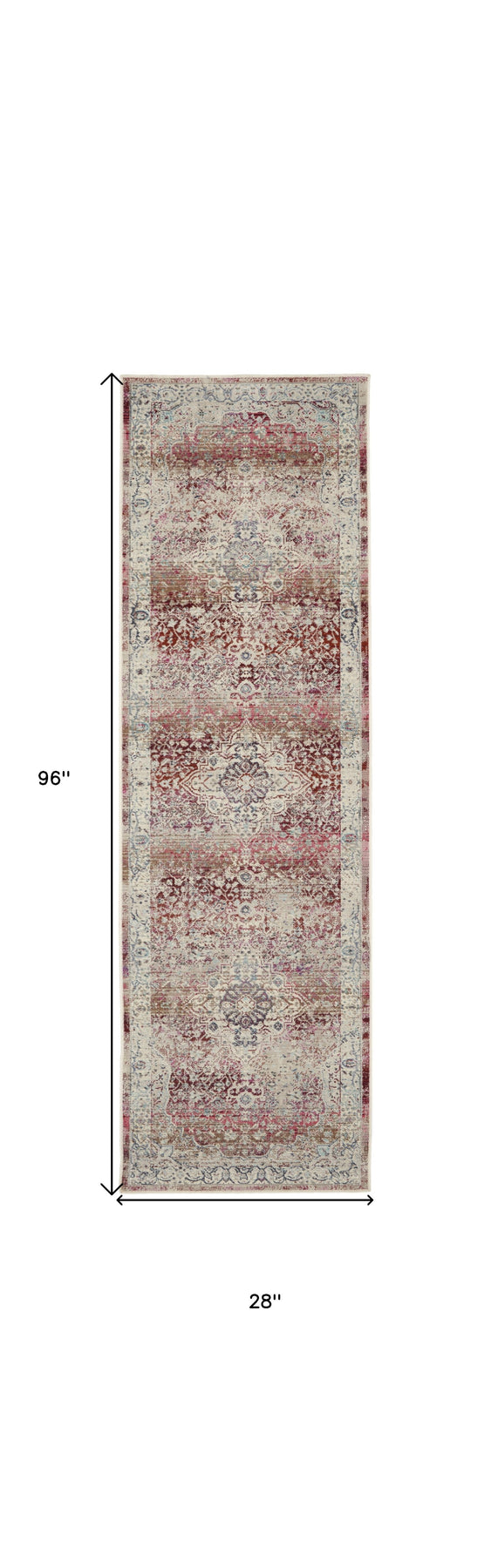 Set an inviting tone in your space with this 8-foot ivory red and brown floral distressed runner rug. Ideal for spaces with kids and pets, this rug is stain resistant to help repel dirt and spilled liquids. Built to last, this rug crafted from polypropylene fibers is known for its durability and long lasting appeal. Rugs are a great way to showcase your style, hide imperfections, warm your home and reduce noise. This rectangular shaped rug features a abstract design that will add a functional and decorative accent to your space. This transitional style runner makes a great accent for the hallway, in front of cabinets, in the laundry room, or any other space you need a narrow and long rug. 28-inch h x 96-inch w x 0.5-inch d.