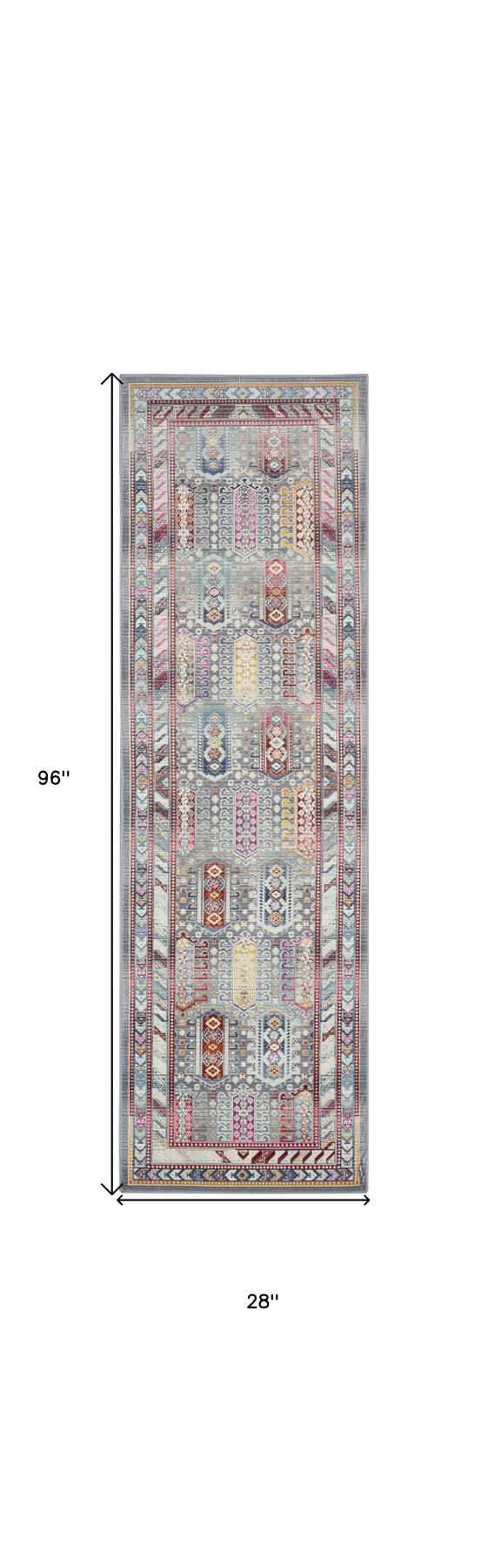 Add great coloration and comfortable texture to your space with this 8-foot ivory gray and red floral distressed runner rug. Ideal for spaces with kids and pets, this rug is stain resistant to help repel dirt and spilled liquids. Built to last, this rug crafted from polypropylene fibers is known for its durability and long lasting appeal. Rugs are a great way to showcase your style, hide imperfections, warm your home and reduce noise. This rectangular shaped rug features a abstract design that will add a functional and decorative accent to your space. This bohemian style runner makes a great accent for the hallway, in front of cabinets, in the laundry room, or any other space you need a narrow and long rug. 28-inch h x 96-inch w x 0.5-inch d.
