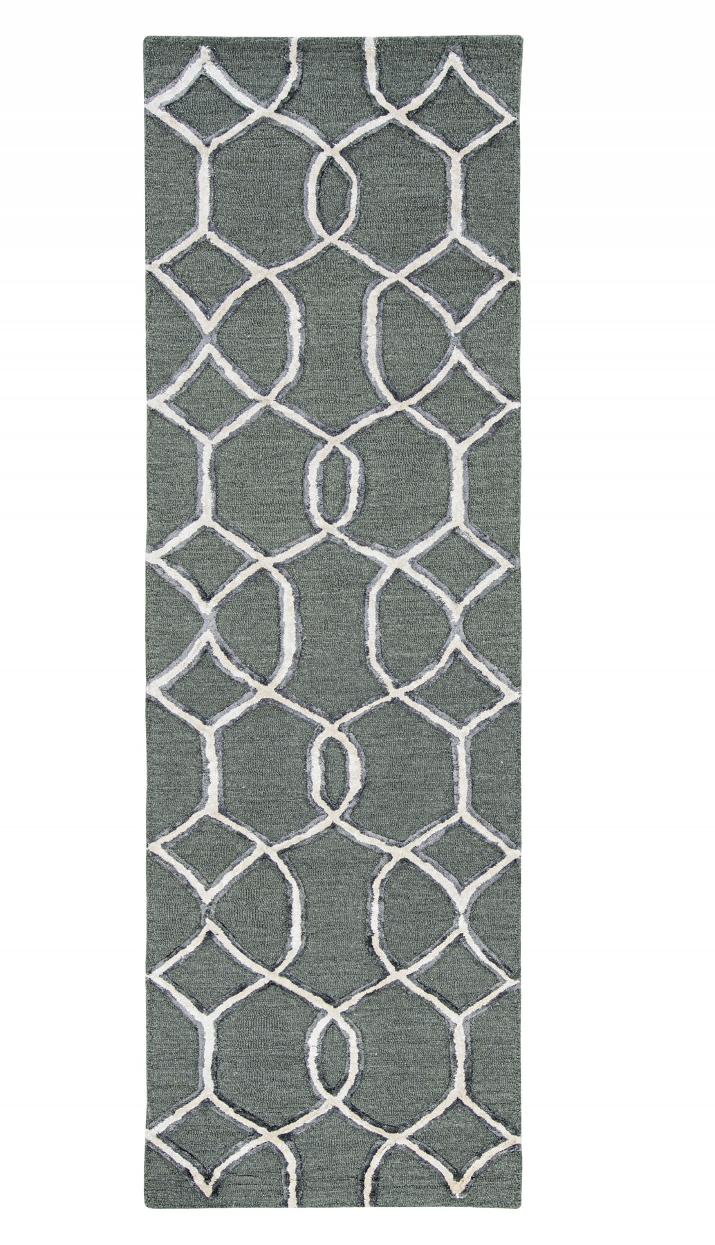 This 8-foot gray wool geometric hand tufted runner rug, is a great way to add warmth to a room. Crafted by skilled artisans, this hand tufted rug is genuine and unique. No two will be exactly alike. Rugs are a great way to showcase your style, hide imperfections, warm your home and reduce noise. This rectangular shaped rug features a abstract design that will add a functional and decorative accent to your space. This contemporary style runner makes a great accent for the hallway, in front of cabinets, in the laundry room, or any other space you need a narrow and long rug. 27-inch h x 96-inch w x 0.5-inch d.