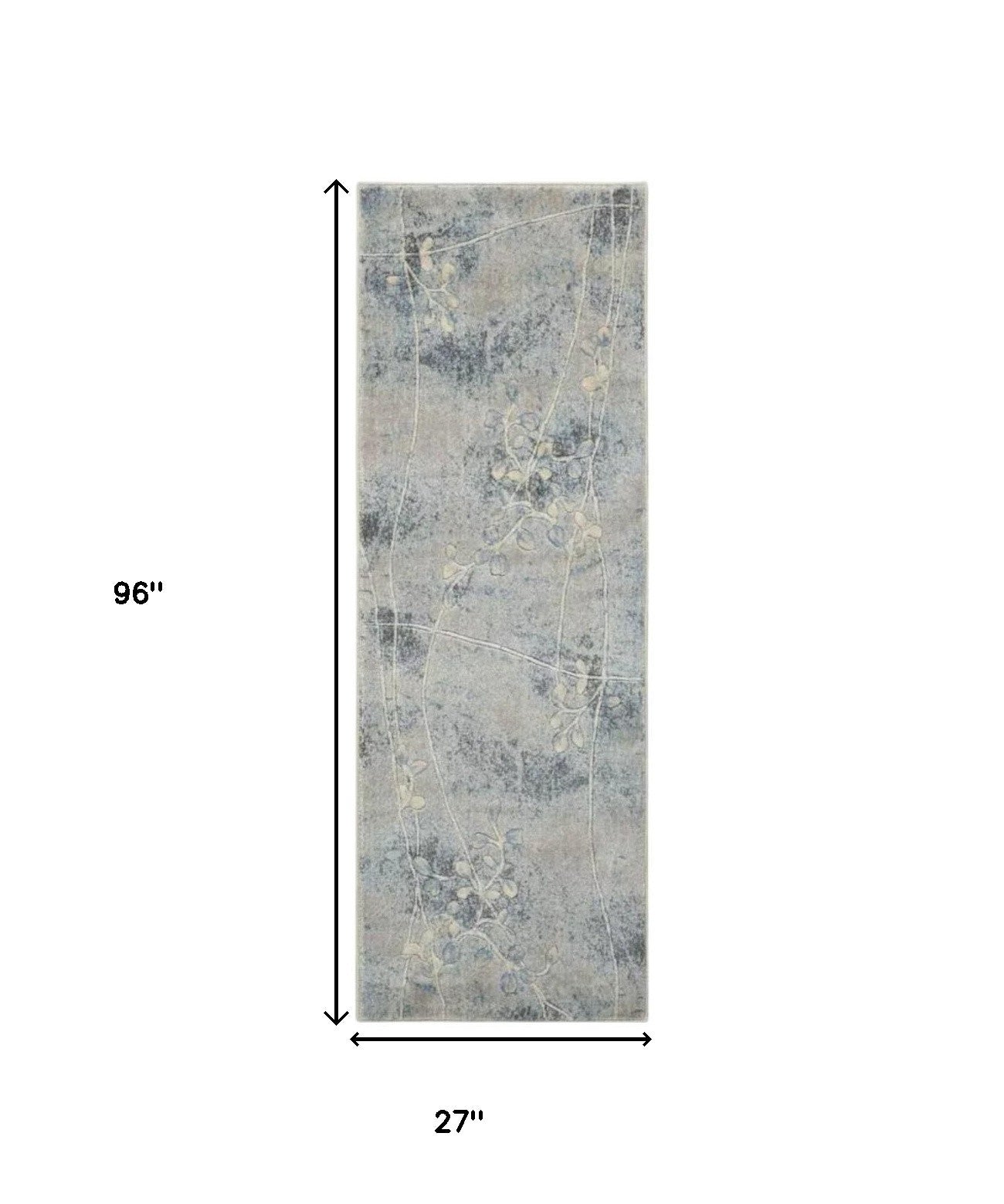 Add some artistry to your room with this 8-foot blue and ivory floral runner rug. Built to last, this rug crafted from polyester fibers is known for its durability and long lasting appeal. Rugs are a great way to showcase your style, hide imperfections, warm your home and reduce noise. This rectangular shaped rug features a abstract design that will add a functional and decorative accent to your space. This contemporary style runner makes a great accent for the hallway, in front of cabinets, in the laundry room, or any other space you need a narrow and long rug. 27-inch h x 96-inch w x 0.5-inch d.