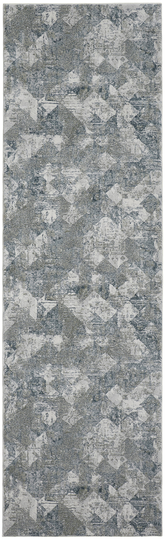 Set an inviting tone in your space with this 8-foot ivory gray and green abstract power loom worn faded runner rug. This runner shaped rug features a abstract design in ivory gray and green to give it visual interest. A classic shape marries with good looking design for your space ideal for spaces with kids and pets, this rug is stain resistant to help repel stains and spilled liquids. Area rugs help to give warmth and sense of home to your space. 32-inch H x 96-inch W x 0.43-inch D