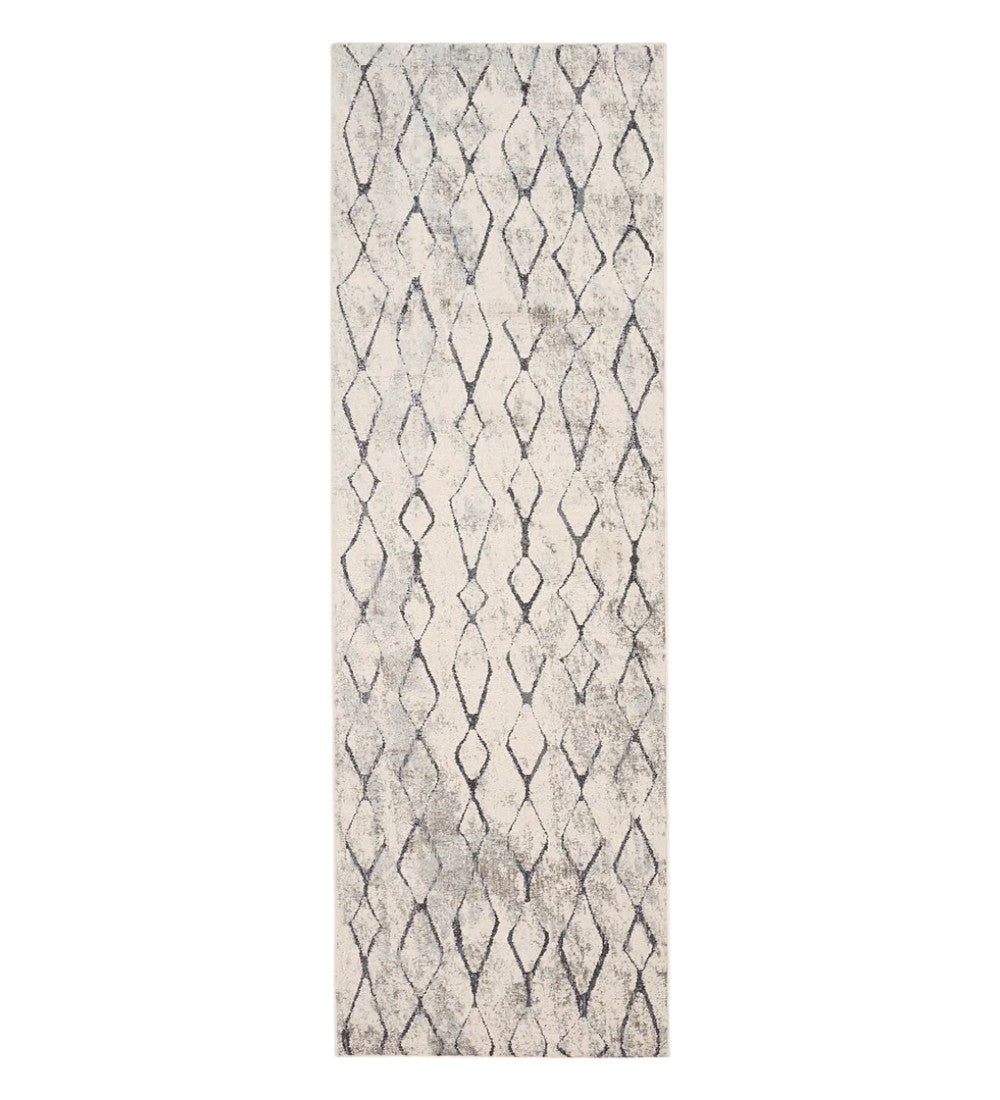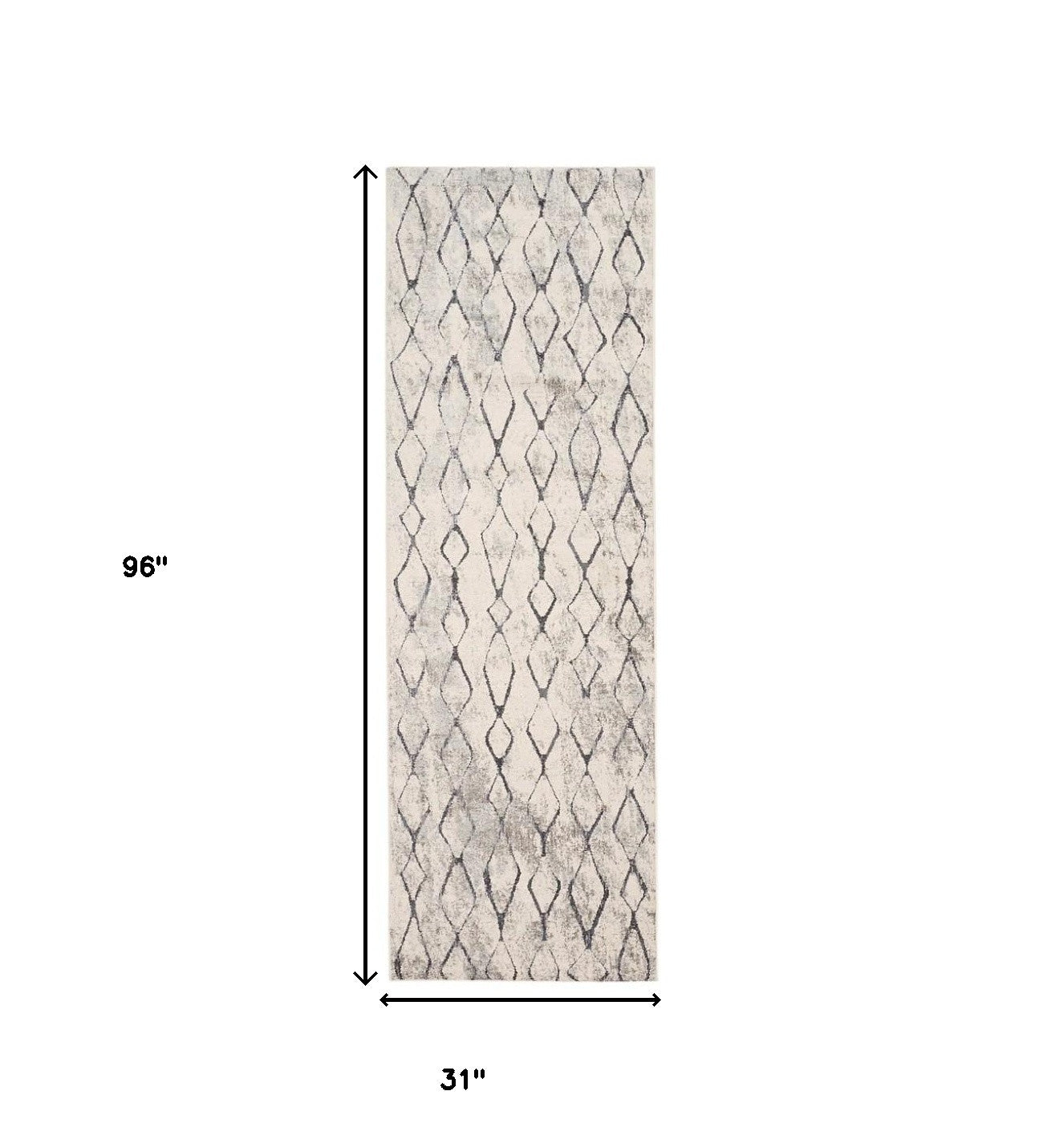 Add great coloration and comfortable texture to your space with this 8-foot gray and ivory abstract runner rug. This runner shaped rug features a abstract design in gray and ivory to give it visual interest. A classic shape marries with good looking design for your space ideal for spaces with kids and pets, this rug is stain resistant to help repel stains and spilled liquids. 31-inch H x 96-inch W x 0.41-inch D