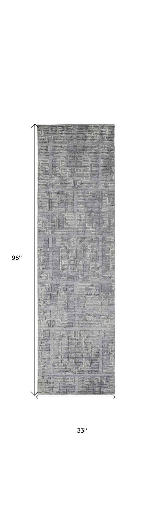 Add great coloration and comfortable texture to your space with this 8-foot gray and ivory abstract hand woven runner rug. This runner shaped rug features a abstract design in gray and ivory to give it visual interest. A classic shape marries with good looking design for your space crafted by skilled artisans, this hand woven rug is genuine and unique. No two will be exactly alike. 33-inch H x 96-inch W x 0.4-inch D