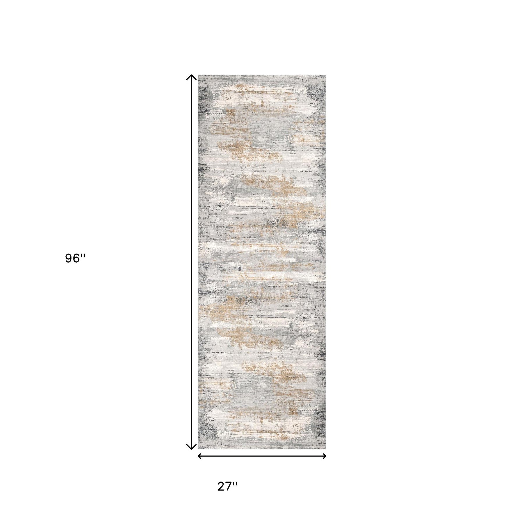 Encouraging imagination and creativity in the colors and patterns, this Gray Mod Distressed Strokes Runner Rug serves to set a mood in any modern or contemporary living space. The visually intriguing piece of abstract art in distressed shades of gray and ivory creates a stylish combination while the splashes of brown tints catch the eyes. Made in Turkey with a fusion of viscose and polyester in a low pile construction to make sure the immaculate look lasts for ages while being durable enough to withstand indoor elements. The soft and smooth surface texture not only offers a layer of warmth under the feet but also adds a silky sheen to the piece. Upholding a subtle sophistication in a neutral palette, this runner rug will add a dimension to your modern living space. 96Ó x 27Ó x 0.4Ó