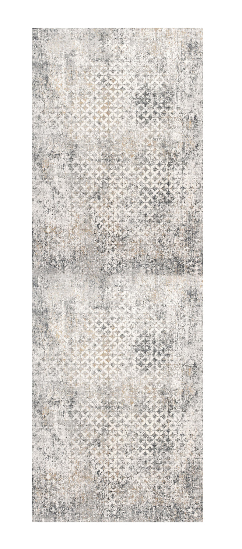 Spruce up the appearance of any hardwood or tile floor with this Gray and Ivory Distressed Runner Rug that will add a layer of class and sophistication to your modern interior. The stylish color palette with subtle hues of gray and ivory flaunts distressed design patterns shadowing traces of diamond lattice to create a visually vintage vibe with a contemporary flair. Skilfully crafted by Turkish artisans, this rug is made of a mix of viscose and polyester fibers of premium quality for enhanced durability while the low cut-pile construction creates a textured surface that feels comfortable and luxurious on the touch. The glossy sheen of this rug will stay long for years upon spot cleaning and stay put on the floors without creases and wrinkles. Place this stunning runner rug on the entryway or living room and it will serve as a timeless accent for any contemporary or conventional home. 96Ó x 27Ó x 0.4Ó