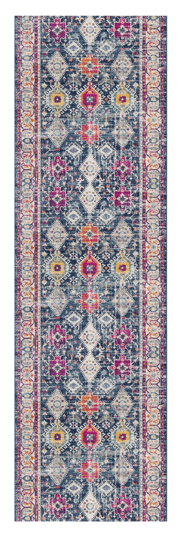 Set an inviting tone in your space with this 8-foot blue and ivory oriental runner rug. Built to last, this rug crafted from polypropylene fibers is known for its durability and long lasting appeal. Rugs are a great way to showcase your style, hide imperfections, warm your home and reduce noise. This rectangular shaped rug features a abstract design that will add a functional and decorative accent to your space. This traditional style runner makes a great accent for the hallway, in front of cabinets, in the laundry room, or any other space you need a narrow and long rug. 27-inch h x 96-inch w x 0.4-inch d.