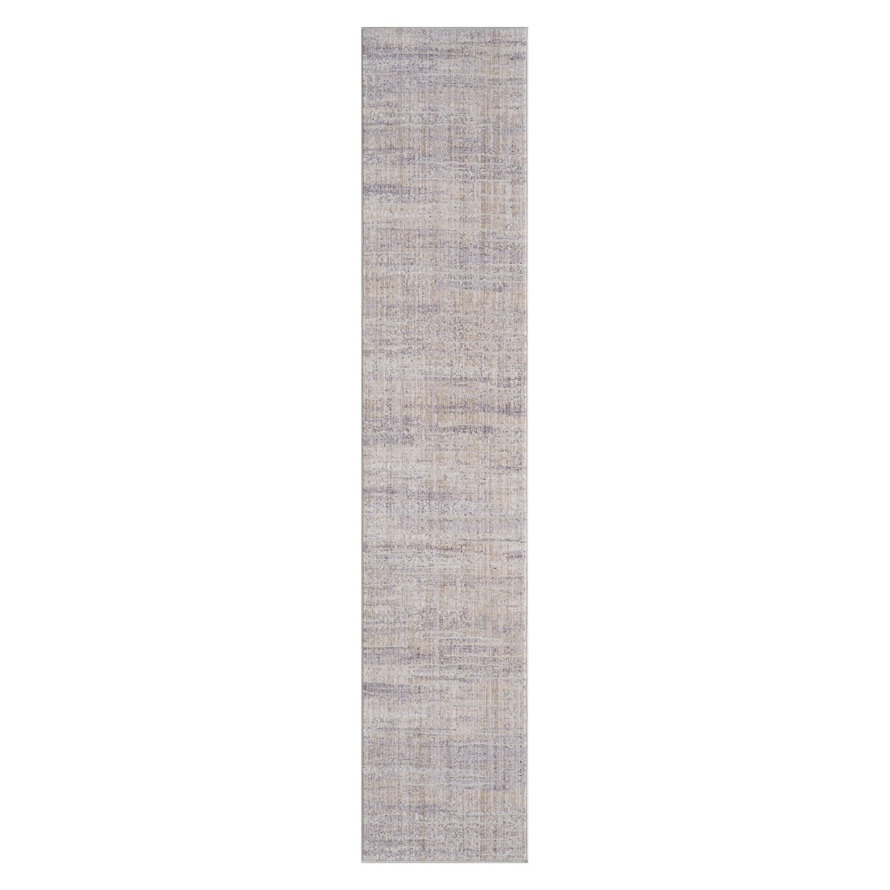 This 8-foot beige and gray striped runner rug, is a great way to add warmth to a room. Ideal for spaces with kids and pets, this rug is stain resistant to help repel dirt and spilled liquids. Built to last, this rug crafted from polyester fibers is known for its durability and long lasting appeal. Rugs are a great way to showcase your style, hide imperfections, warm your home and reduce noise. This rectangular shaped rug features a abstract design that will add a functional and decorative accent to your space. This contemporary style runner makes a great accent for the hallway, in front of cabinets, in the laundry room, or any other space you need a narrow and long rug. 24-inch h x 96-inch w x 0.4-inch d.