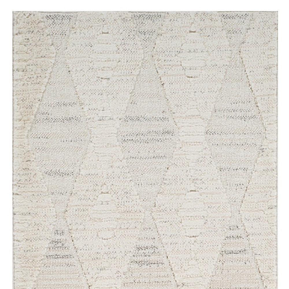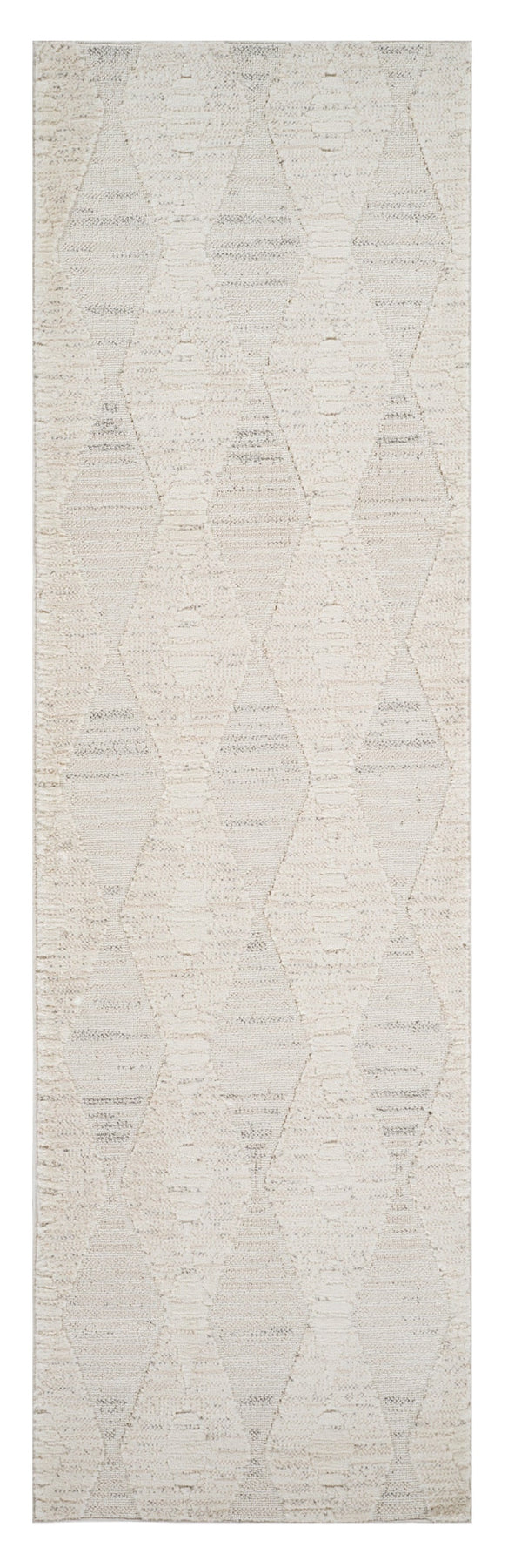 This 8-foot cream and beige geometric distressed runner rug, is a great way to add warmth to a room. This runner shaped rug features a geometric design in cream and beige to give it visual interest. A classic shape marries with good looking design for your space ideal for spaces with kids and pets, this rug is stain resistant to help repel stains and spilled liquids. 24-inch h x 96-inch w x 0.4-inch d