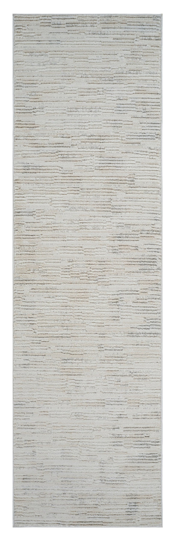 Add some artistry to your room with this 8-foot gray and beige geometric distressed runner rug. Ideal for spaces with kids and pets, this rug is stain resistant to help repel dirt and spilled liquids. Built to last, this rug crafted from polyester fibers is known for its durability and long lasting appeal. Rugs are a great way to showcase your style, hide imperfections, warm your home and reduce noise. This rectangular shaped rug features a abstract design that will add a functional and decorative accent to your space. This modern style runner makes a great accent for the hallway, in front of cabinets, in the laundry room, or any other space you need a narrow and long rug. 24-inch h x 96-inch w x 0.4-inch d.