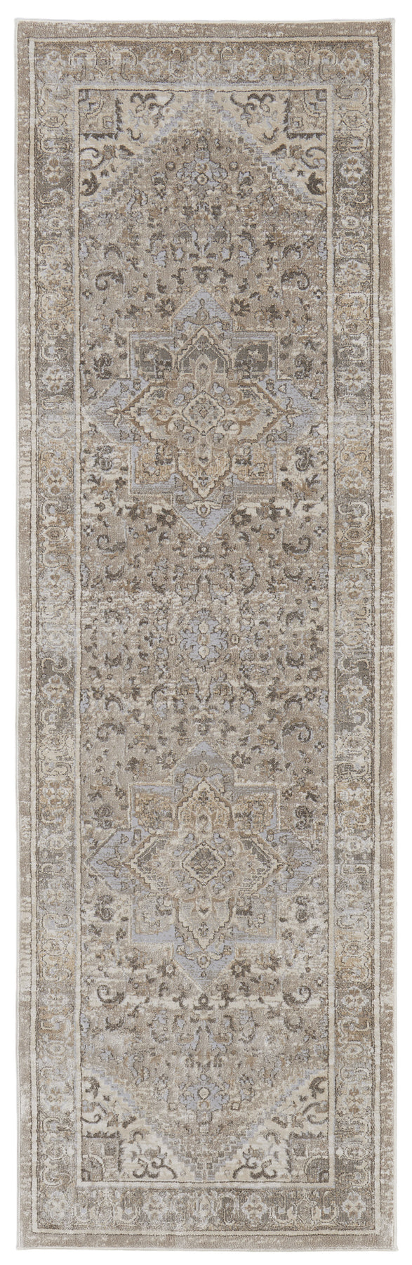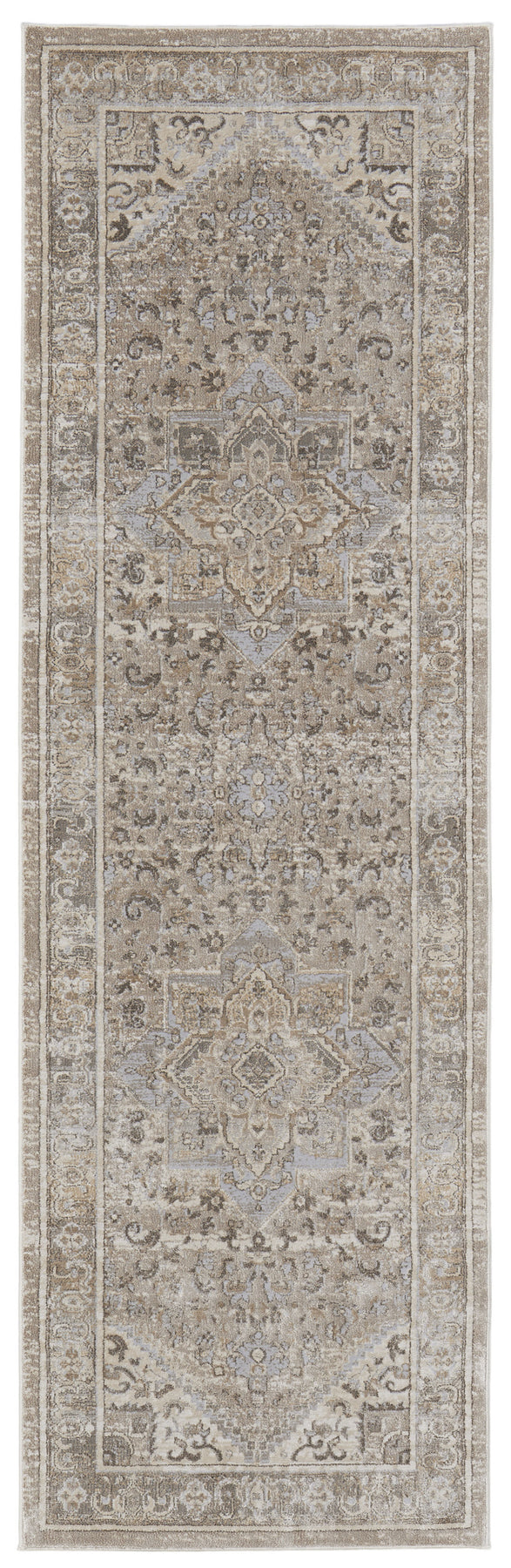 Set an inviting tone in your space with this 8-foot brown and ivory medallion power loom distressed runner rug. This runner shaped rug features a medallion design that will add a functional and decorative accent to your space. This smaller sized rug is just what you need for your walkway, or in front of door, cabinet, refrigerator, or chair. 30-inch h x 96-inch w x 0.39-inch d