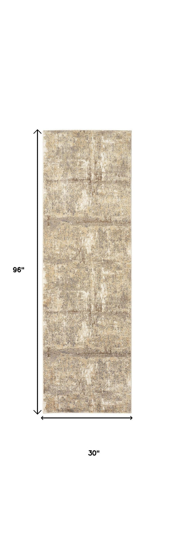 Set an inviting tone in your space with this 8-foot brown and ivory abstract distressed runner rug. This runner shaped rug features a abstract design that will add a functional and decorative accent to your space. This smaller sized rug is just what you need for your walkway, or in front of door, cabinet, refrigerator, or chair. 30-inch h x 96-inch w x 0.39-inch d