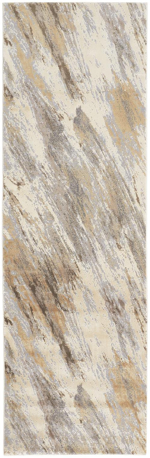 This 8-foot brown and ivory abstract distressed runner rug, is a great way to add warmth to a room. This runner shaped rug features a abstract design that will add a functional and decorative accent to your space. This smaller sized rug is just what you need for your walkway, or in front of door, cabinet, refrigerator, or chair. 30-inch h x 96-inch w x 0.39-inch d