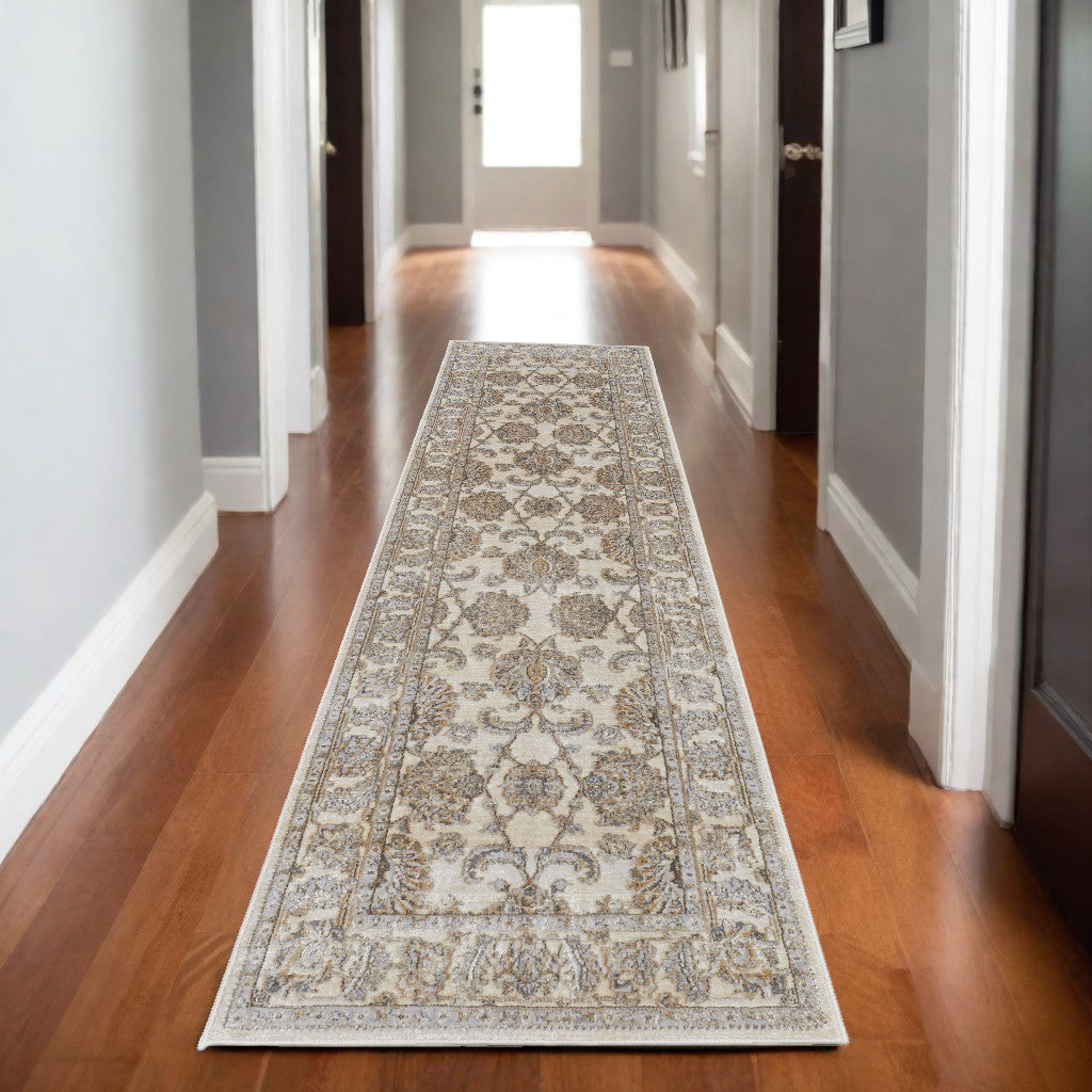 Add great coloration and comfortable texture to your space with this 8-foot brown and ivory oriental power loom distressed runner rug. This runner shaped rug features a oriental design in brown and ivory to give it visual interest. A classic shape marries with good looking design for your space place this area rug against a hardwood or tile floor and it will enliven your living space with style and sophistication. 30-inch H x 96-inch W x 0.39-inch D