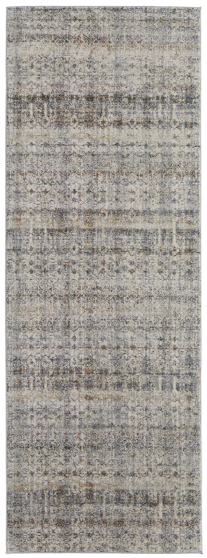 Add great coloration and comfortable texture to your space with this 8-foot gray ivory and blue abstract power loom worn faded runner rug with fringe. This runner shaped rug features a abstract design in gray ivory and blue to give it visual interest. A classic shape marries with good looking design for your space tassel ends bring a timeless and fashionable look to your interior. Area rugs help to give warmth and sense of home to your space. 30-inch H x 96-inch W x 0.39-inch D